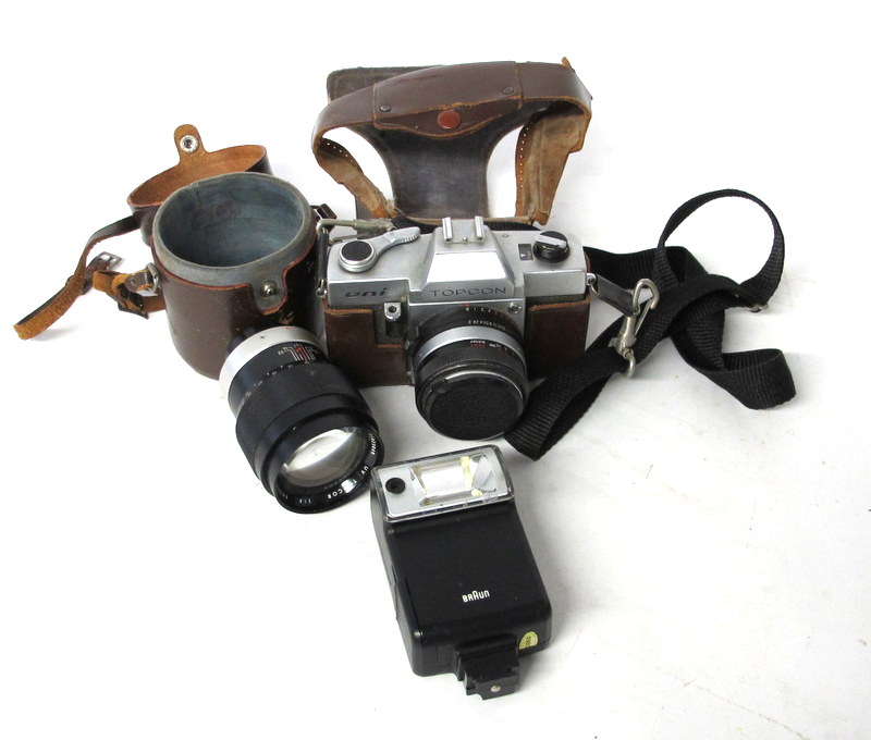 1 TOPCON Uni Camera with Strap and attached camera case (not a digital camera)