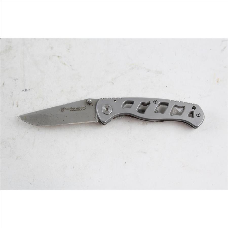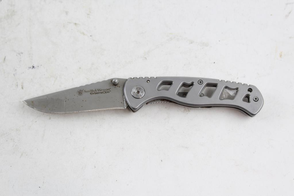 Get a great deal with this online auction for a knife presented by Property Room on behalf of a law enforcement or public agency client. - Brand/Model: Smith & Wesson Extreme Ops SWA4 Folding Knife