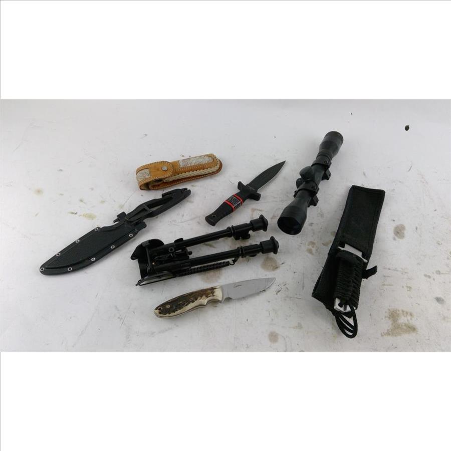 Get a great deal with this online auction presented by PropertyRoom.com on behalf of a law enforcement or public agency client. - Items include: Knifes, Tripod, Rifle scope