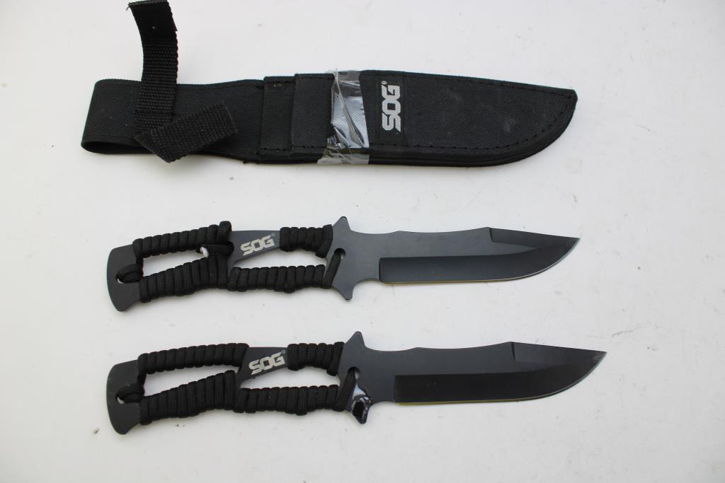 Get a great deal with this online auction presented by PropertyRoom.com on behalf of a law enforcement or public agency client. - SOG fixed blade knives set in sheath