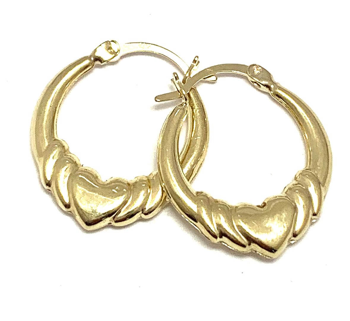 Solid 10k Yellow Gold Heart Hoop Earrings