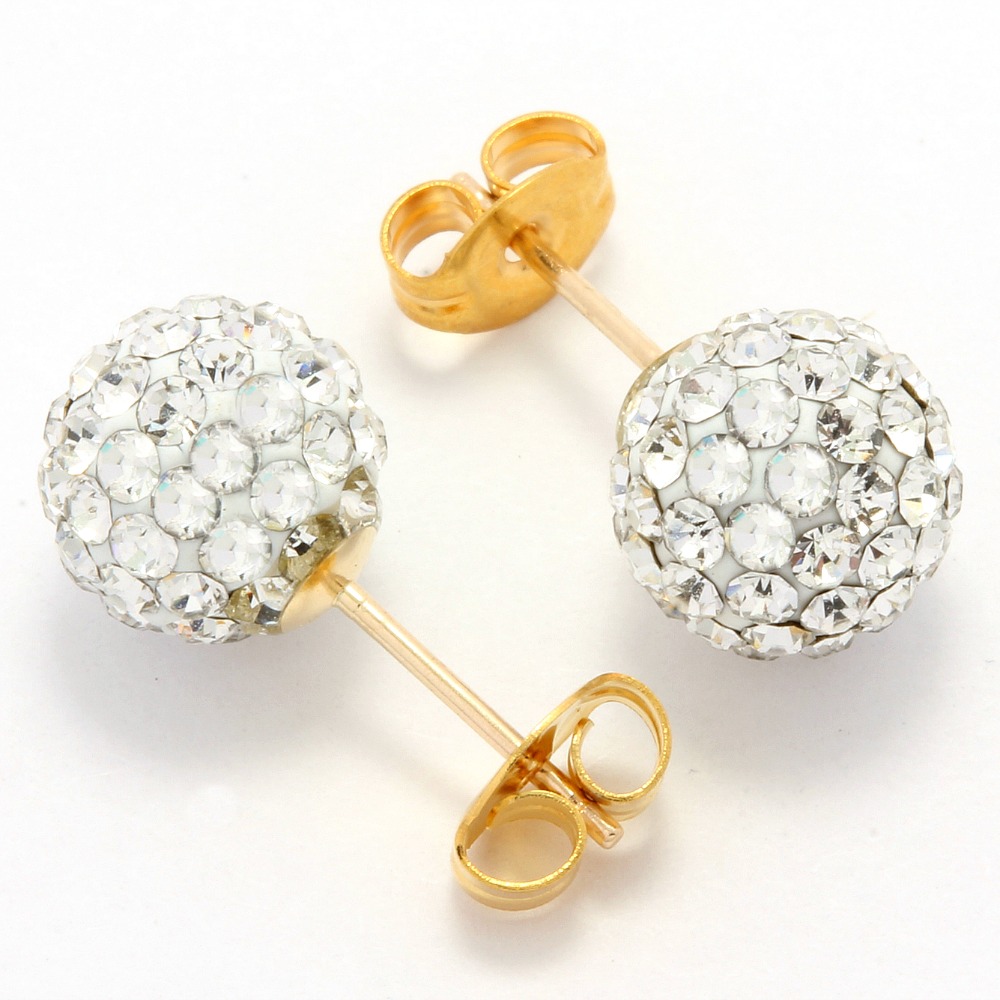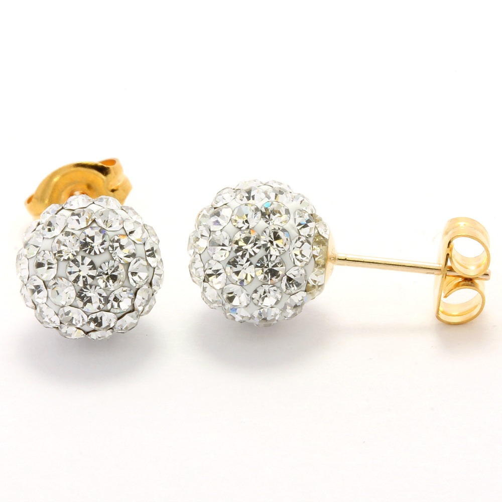 Solid 14k Yellow Gold, Swarovski Crystal 8mm Ball Stud Earrings