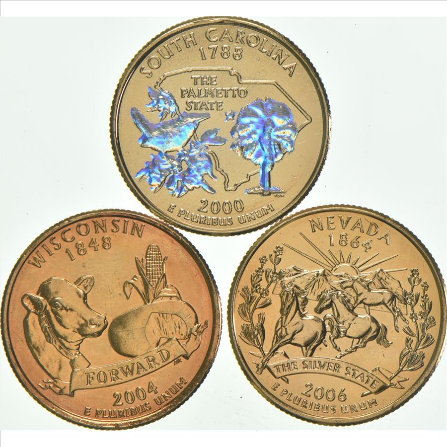 Solid 24K GOLD Plated Lot 2000-P South Carolina State Quarter 2004-P Wisconsin State Quarter 2006-P Nevada State Quarter
