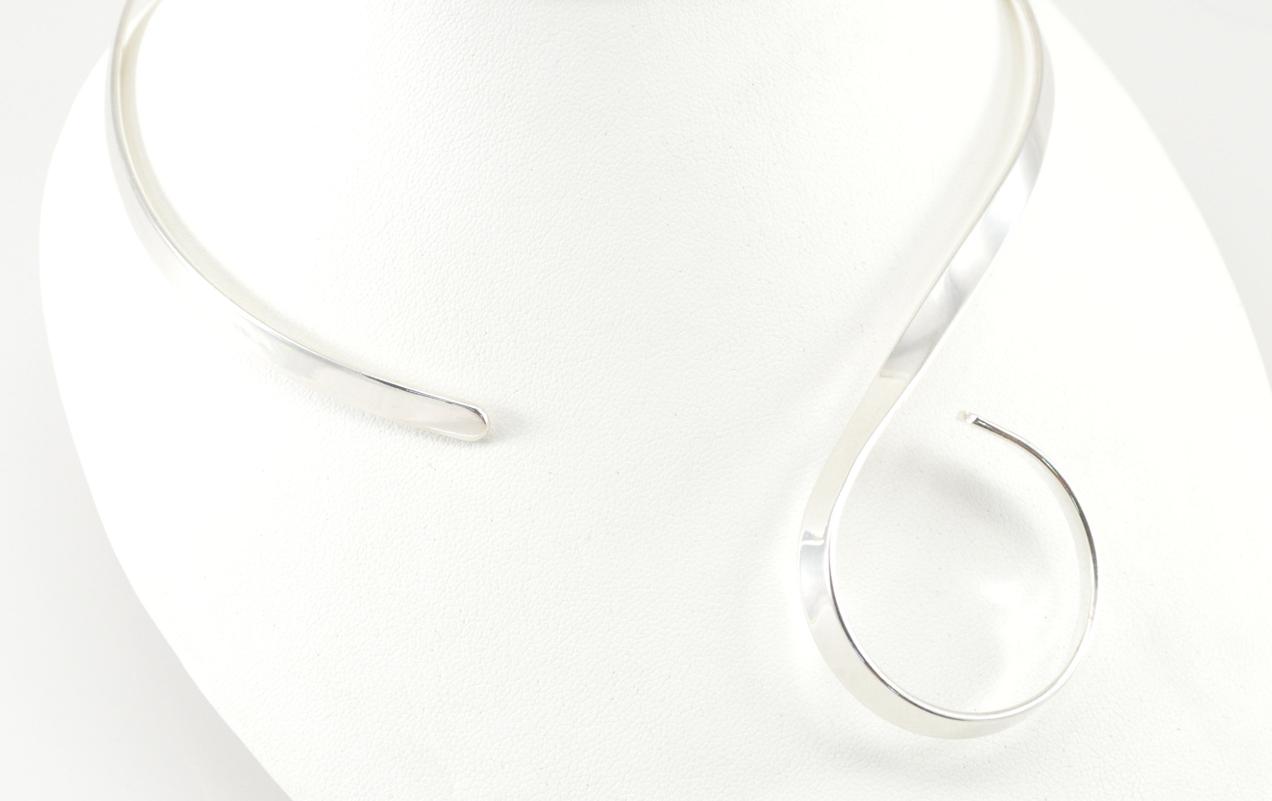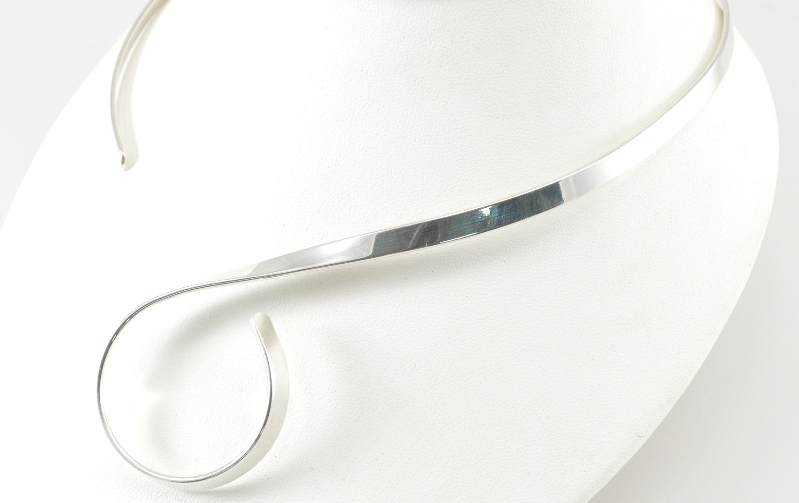Solid Silver Rigid Spiral Flat Wire Choker 5.5'' Diameter Sterling Necklace 30.8g Tested
