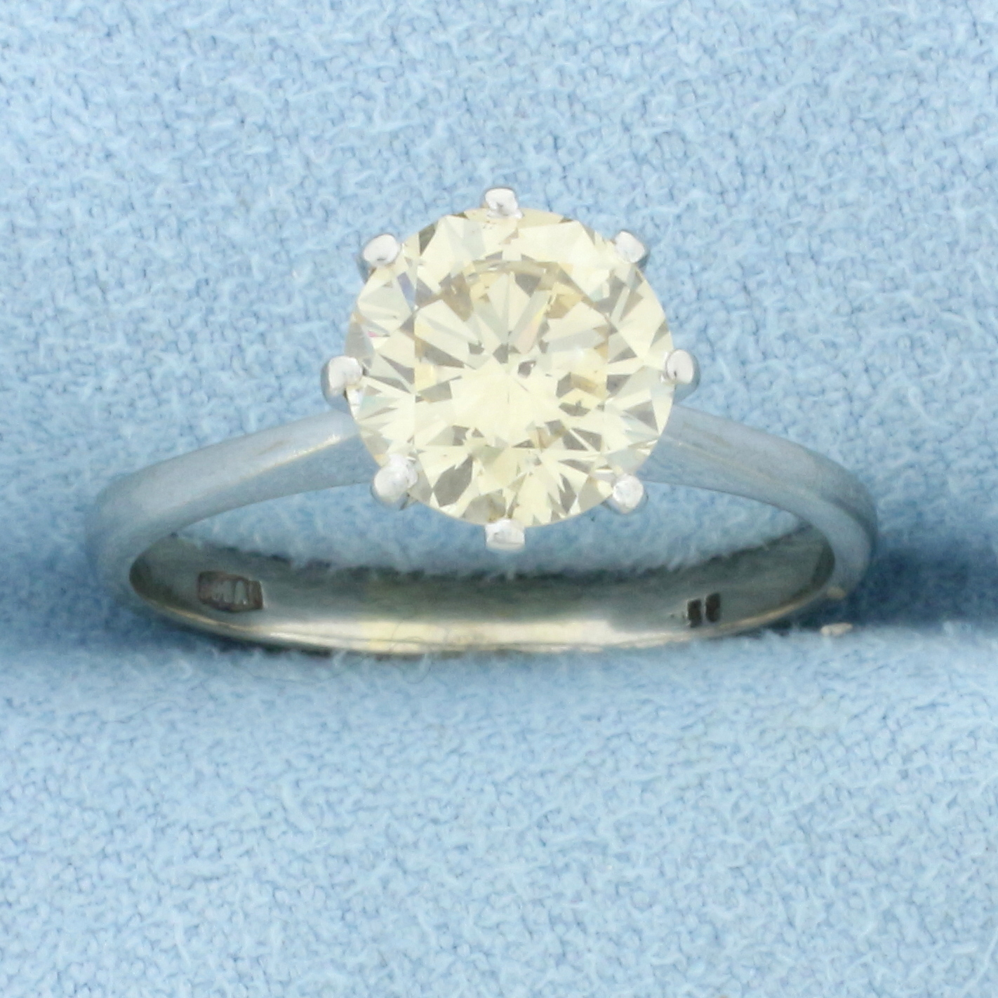 In 14K White Gold. Contains one high quality natural 1.75ct round brilliant Champagne Diamond with warm color and is eye clean. Size 7. 3.1g.