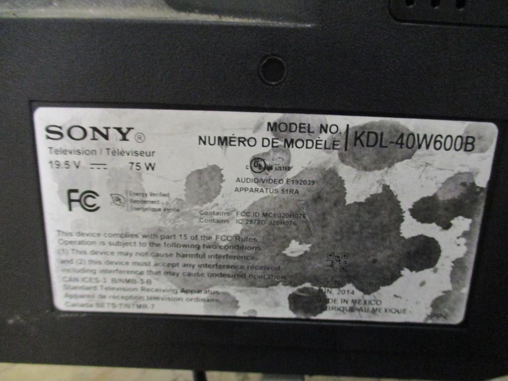 Get a great deal with this online auction presented by PropertyRoom.com on behalf of a law enforcement or public agency client. Model: KDL-40W6001B Screen Size: 40" Date of Manufacture: June 2014 Measurements: Height 21", Width 36", Length 6" Base: yes Remote Control: no Power Cord: no Physical Condition: Good, scratches, nicks, dirty-missing other end to the power cord. Testing Results: Item was tested for power only and it powered on, displayed menu. Input and output ports were not tested and may be non-functional. Item is sold "As Is".