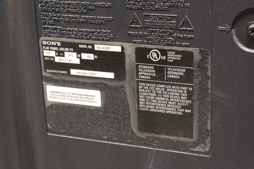 Get a great deal with this online auction for a TV presented by Property Room on behalf of law enforcement or public agency client. Model: KE-42M1 Screen Size: 42" Date of Manufacture: January 2005 Measurements: 42.3"x29.5"x4.3" Base: Included Remote Control: None Included Power Cord: None Included Cosmetic Condition: Marks, Scratches, and Scuffs; Screen is Scratched Testing Results: Item was tested for power only and it powered on, displayed menu. Screen shows some burn-in discoloration. Input and output ports were not tested and may be non-functional. Item is sold "As Is".