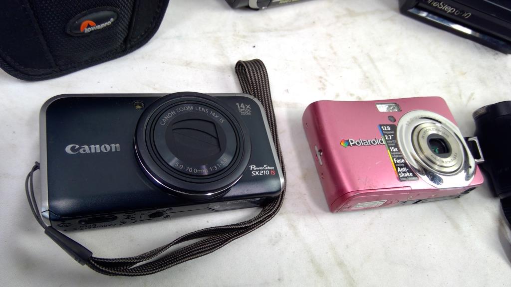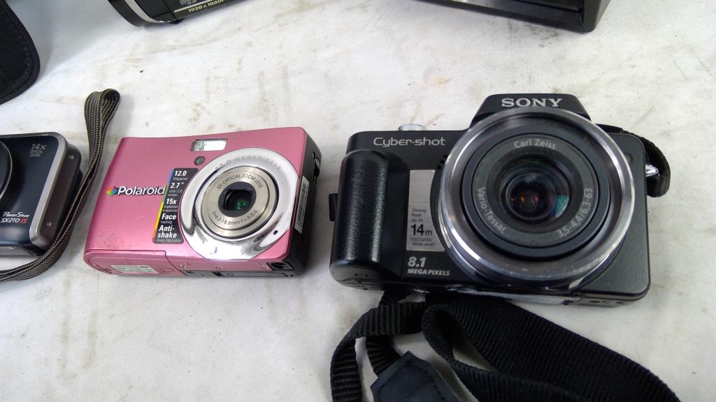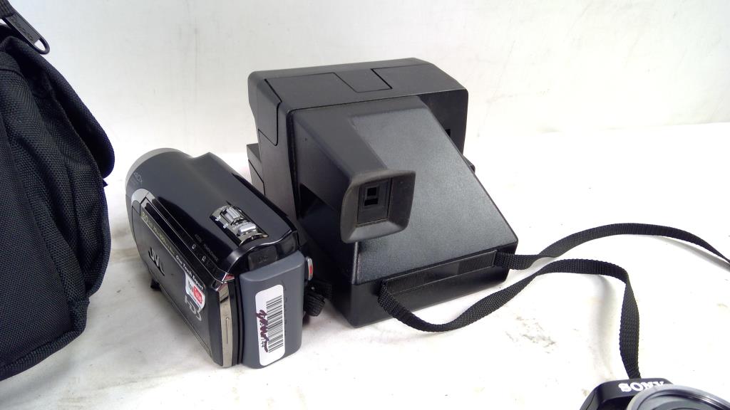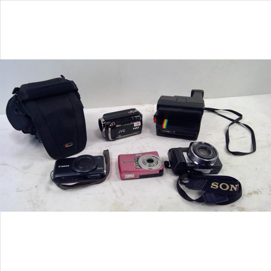 Sony, Canon, Polaroid Digital Cameras, JVC Camcorder, Polaroid 600 Land Camera, 5 Pieces
