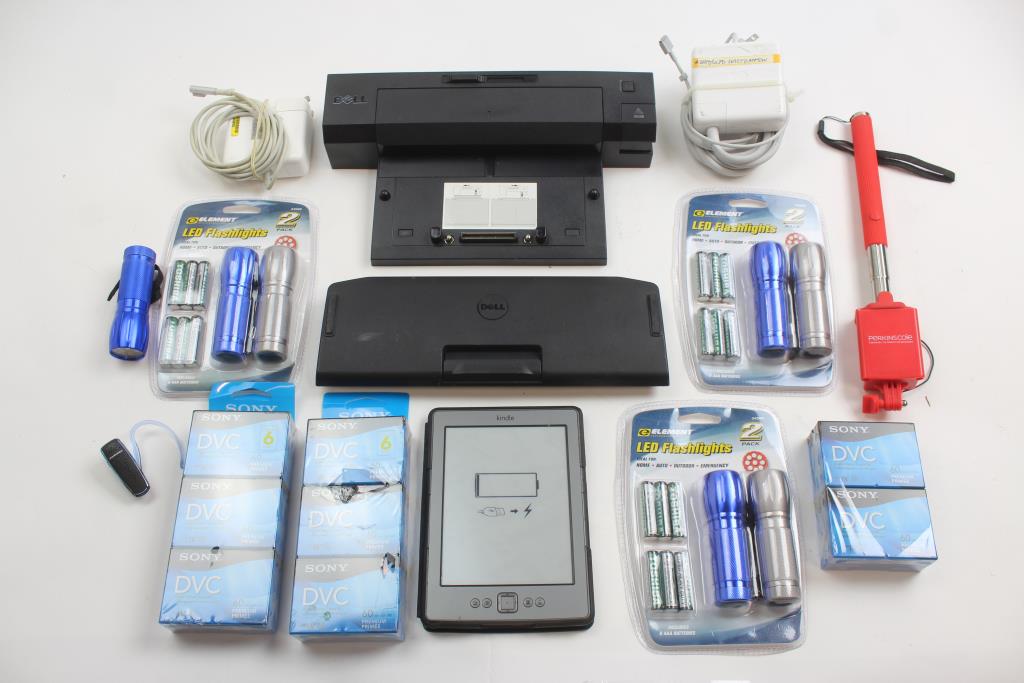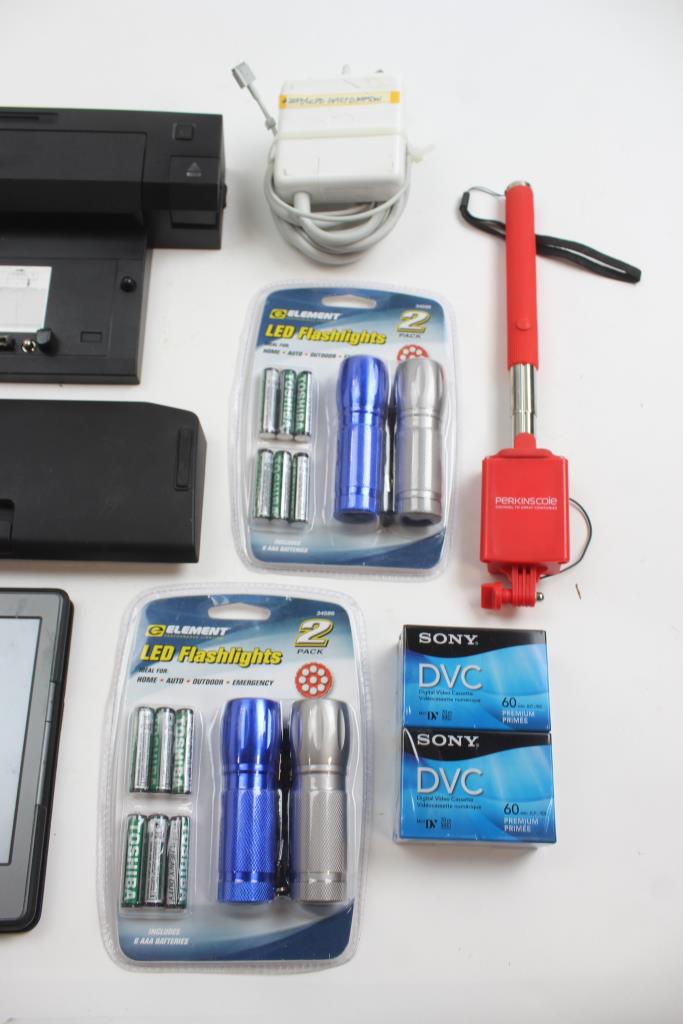Get a great deal with this online auction for an electronics lot presented by Property Room on behalf of a law enforcement or public agency client. - Electronic Bulk Lot Includes: Sony DVC Packs, Power Cords/Adapters, Flashlights, & More