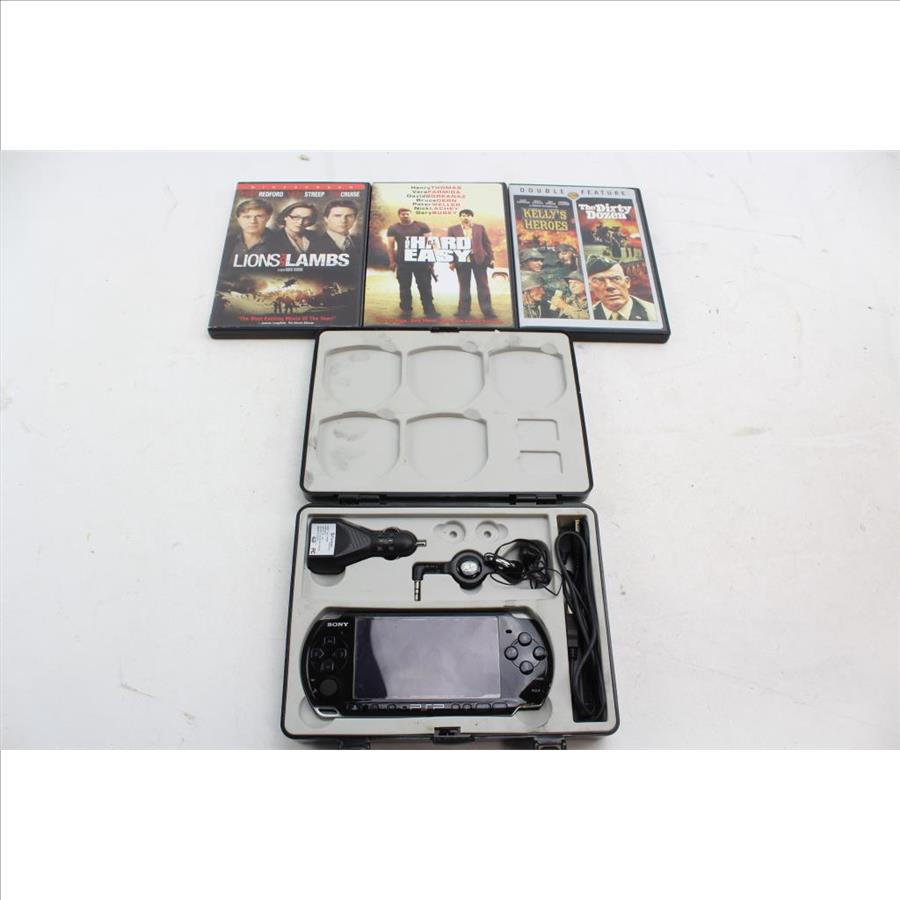 Get a great deal with this online auction for a PSP gaming system by Property Room on behalf of law enforcement or public agency client. Model: Sony Playstation Portable (PSP) Gaming System And Movies:5+ Pieces Dvd Movies: Kelly's Heroes, Dirty Dozen, The Hard Easy, Lions for Lambs Screen: 4 1/4" - Power Adapter: included