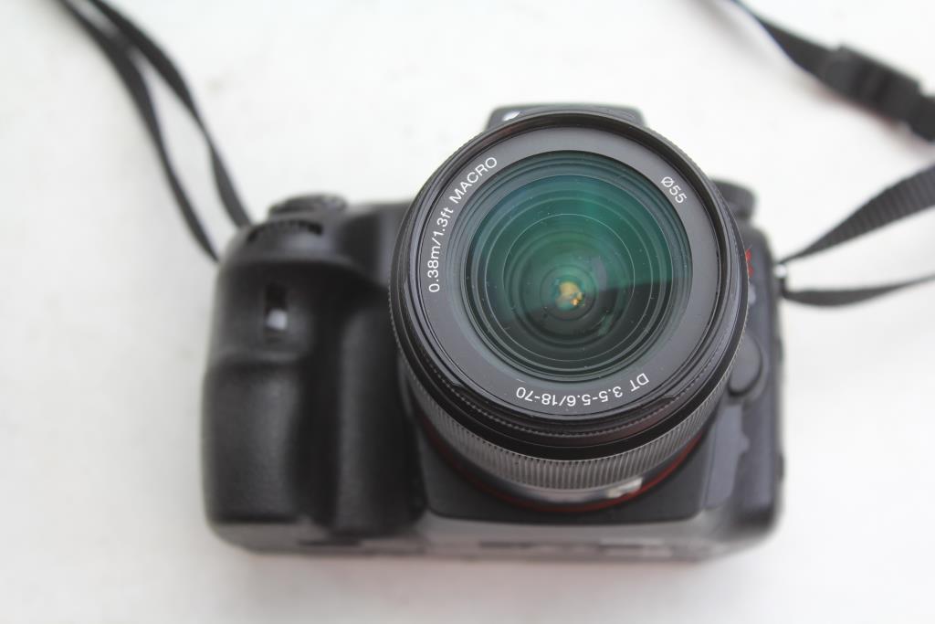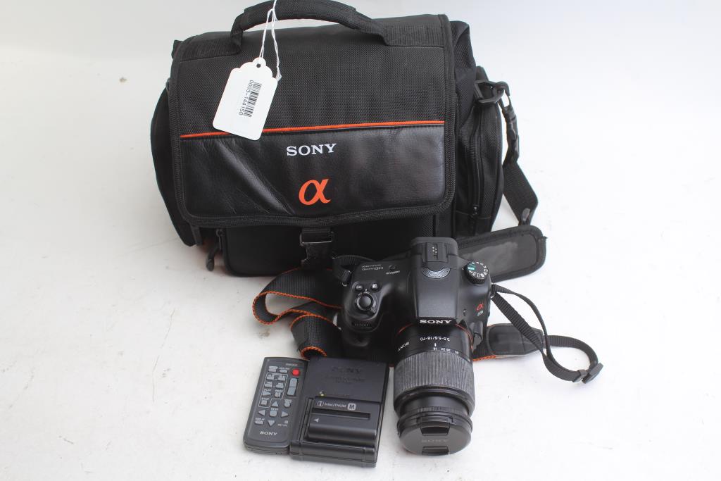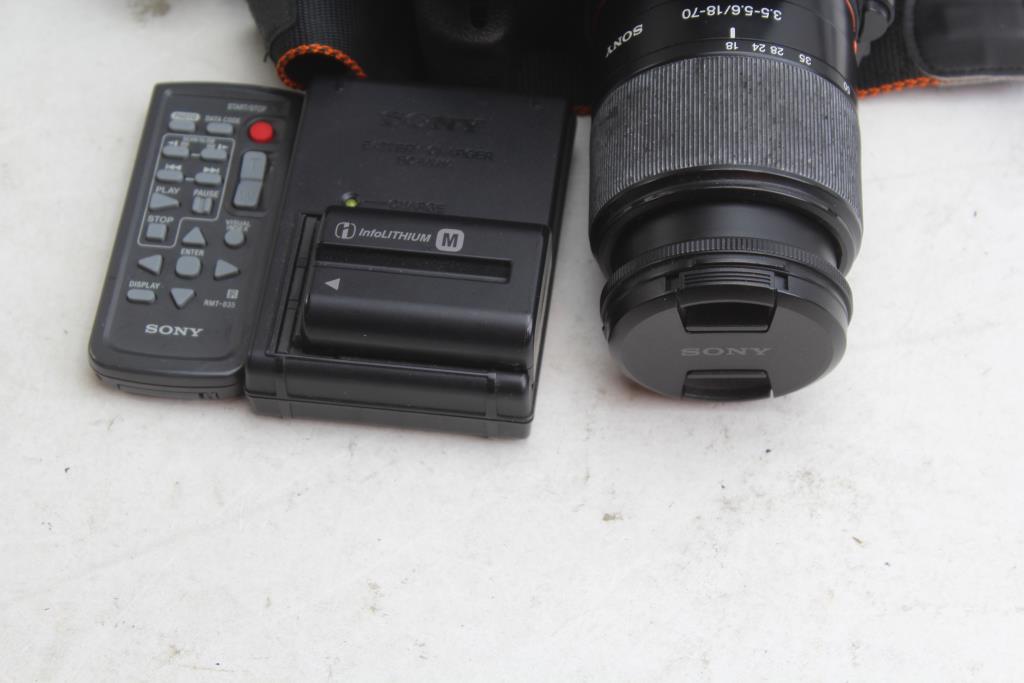 - Accessories: 18-70mm f/3.5-5.6 Sony Lens, Cords/Cables, Charger, Remote, Extra Batteries, Bag