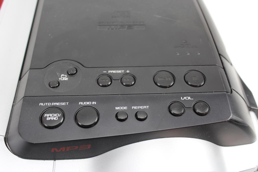 - Testing Results: Powers On; Aux Cord Works, CD Player Works/Buttons Function Properly, Radio Works (unable to test tape player function)