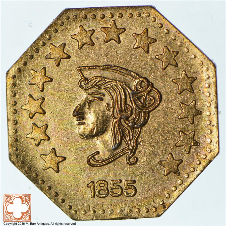 Souvenir Tribute Token - Octagonal - California Gold Rush - 1855 Liberty Head