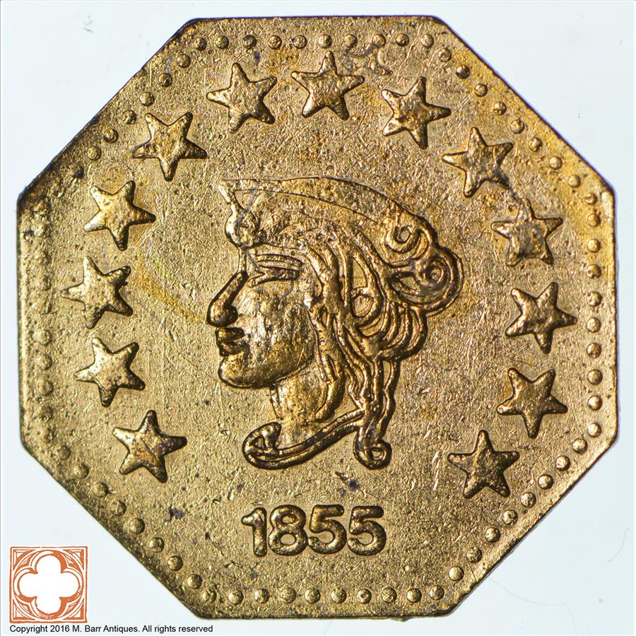 Souvenir Tribute Token - Octagonal - California Gold Rush - 1855 Liberty Head