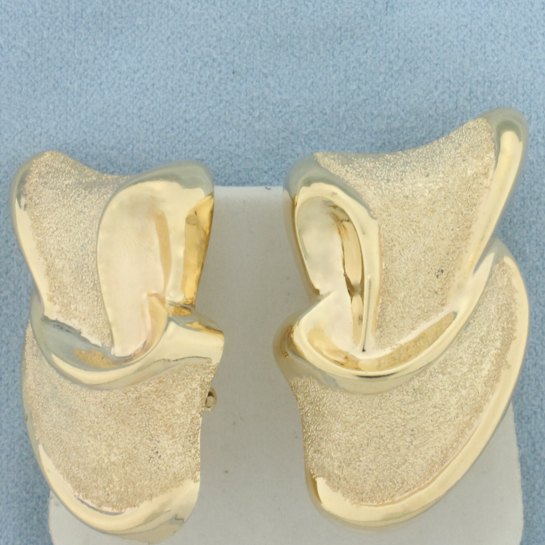 Sparkle Finish Abstract Design Statement Earrings in 14k Yellow Gold