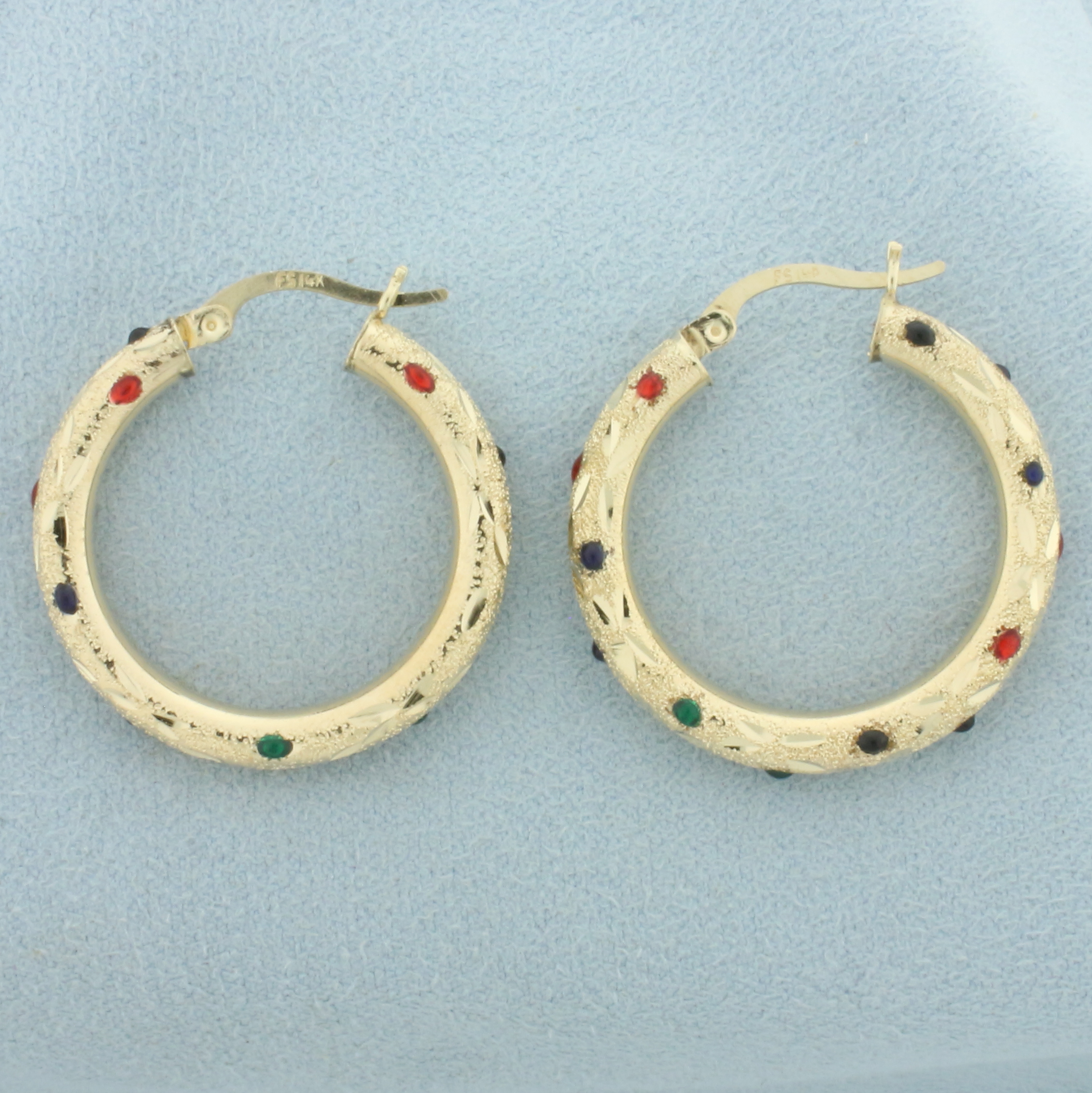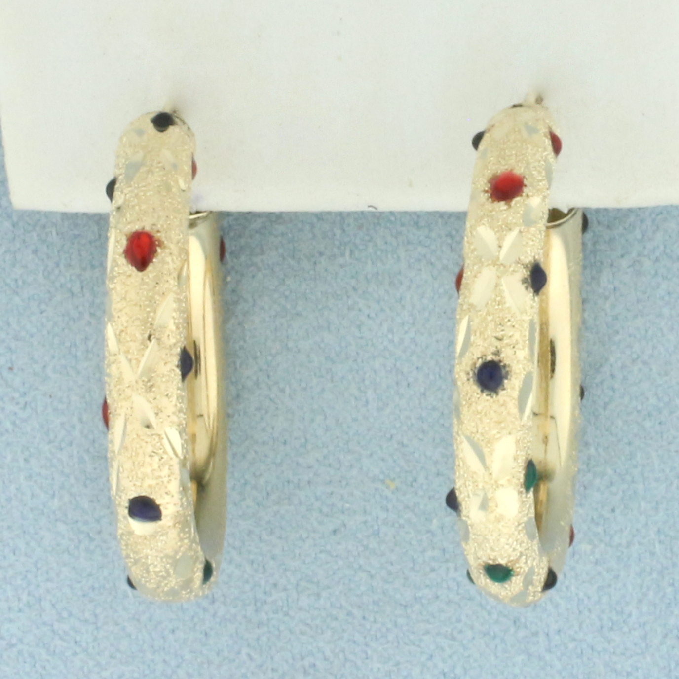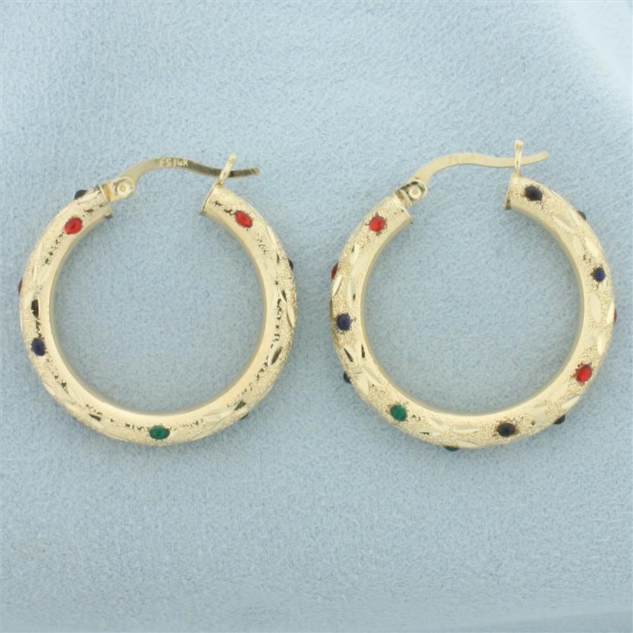 Sparkle Finish Enamel Hoop Earrings in 14k Yellow Gold