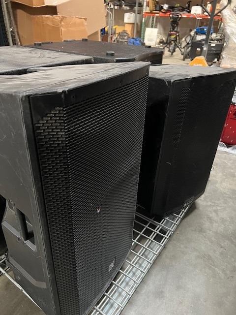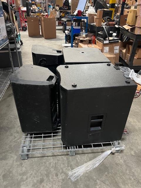- Speakers include: (2) Harbinger Vari Series V2318S powered subwoofers, Speaker ELX200, Speaker TS415