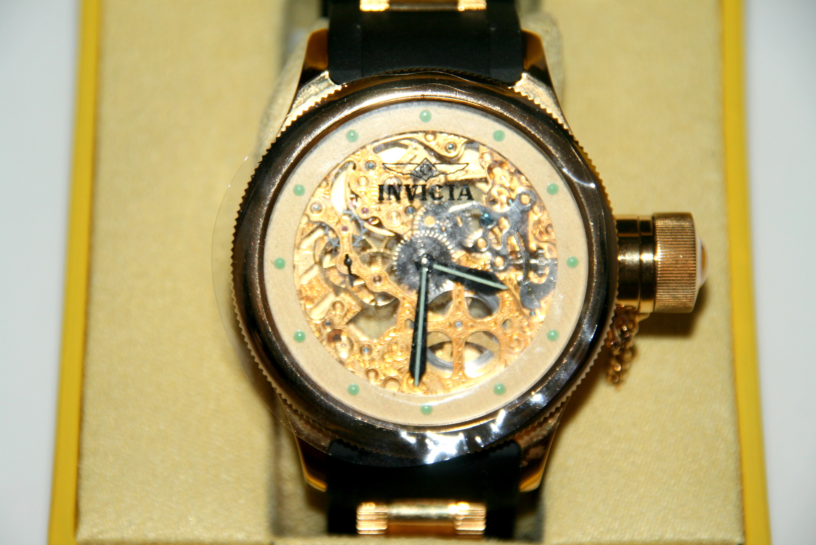 • This wrist watch from Invicta includes a canteen-style crown protector to provide the required resilience