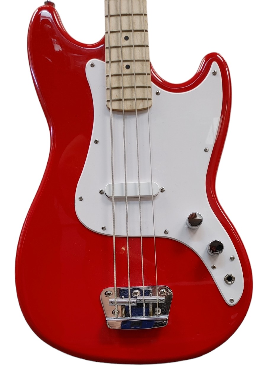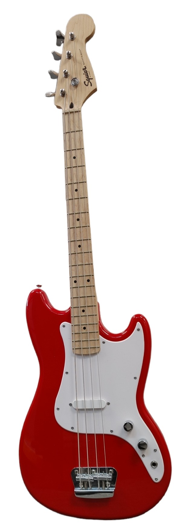 SQUIER 4 STRING BRONCO BASS GUITAR IN CHERRY RED
