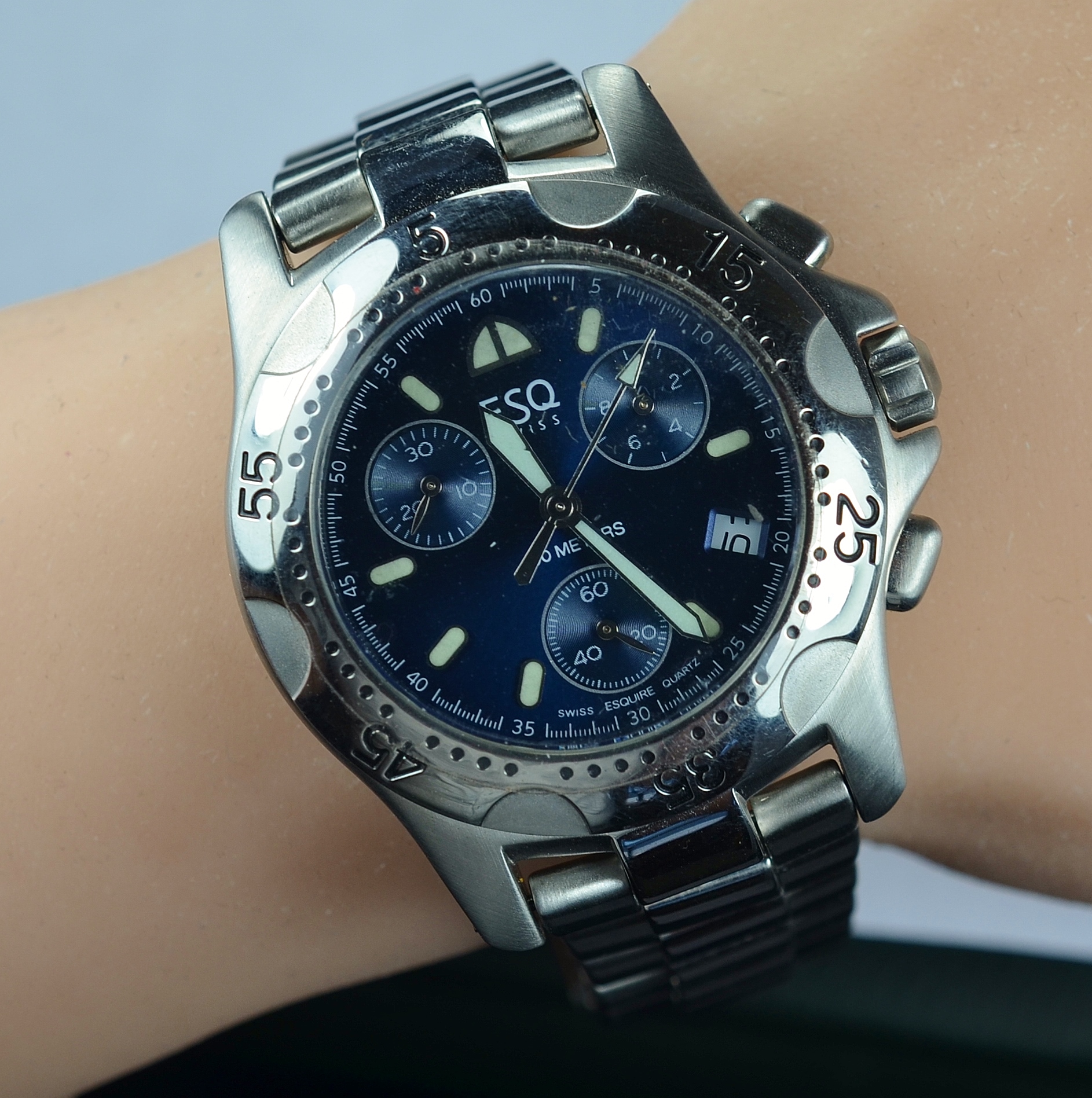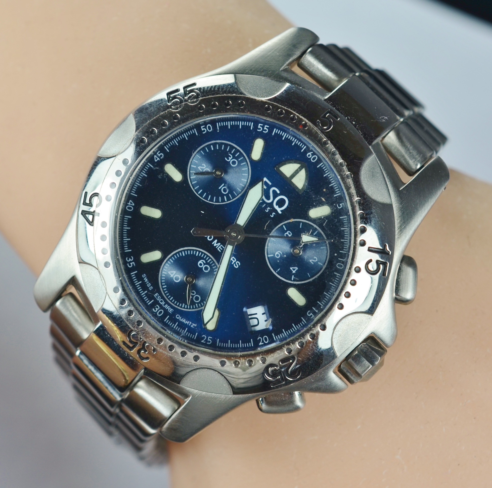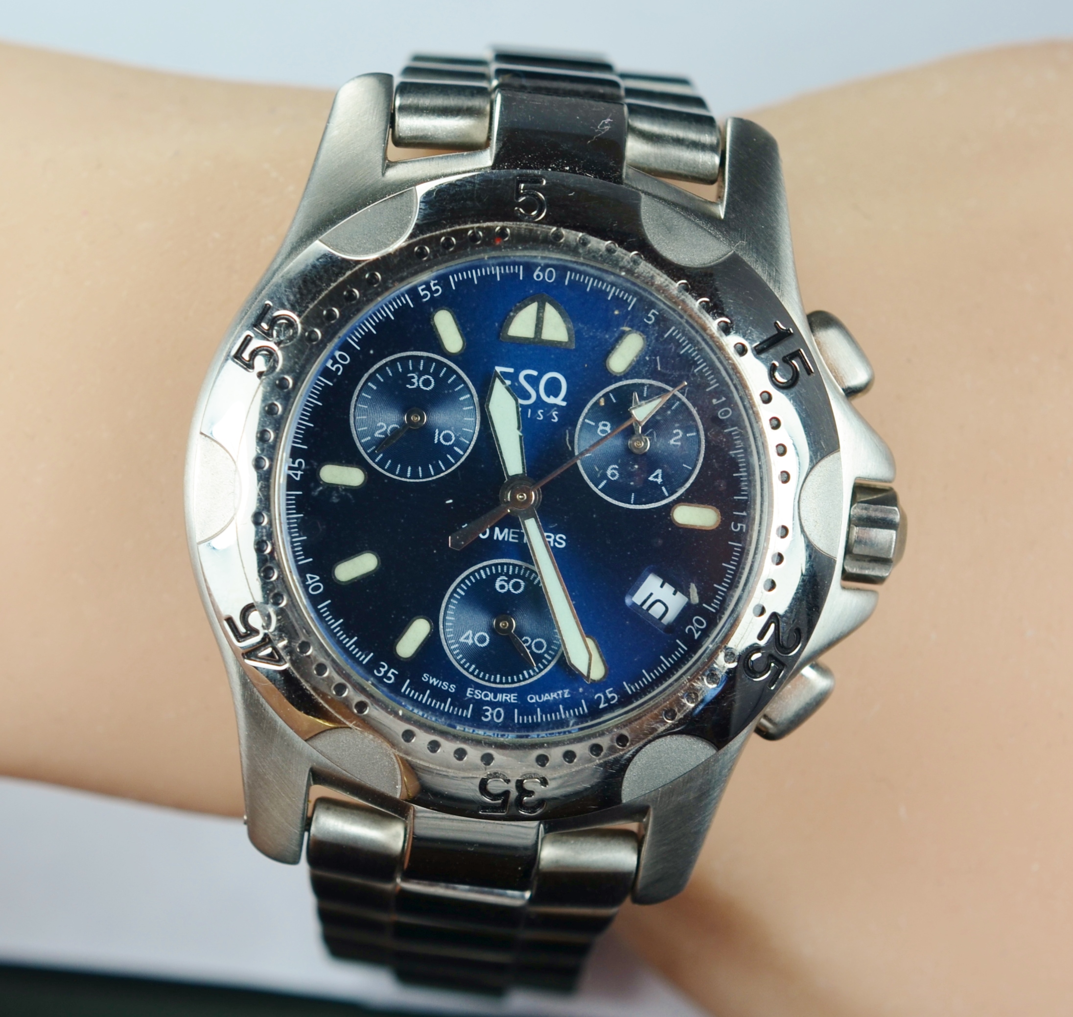 Stainless Steel ESQ Swiss Blue Chrono Dial Watch
