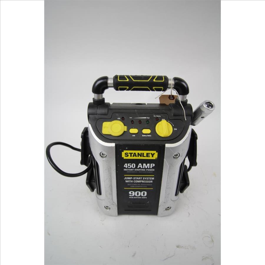Get a great deal with this online auction for a jump-start system presented by Property Room on behalf of a law enforcement or public agency client. - Stanley 450 AMP Jump-Start System with Compressor