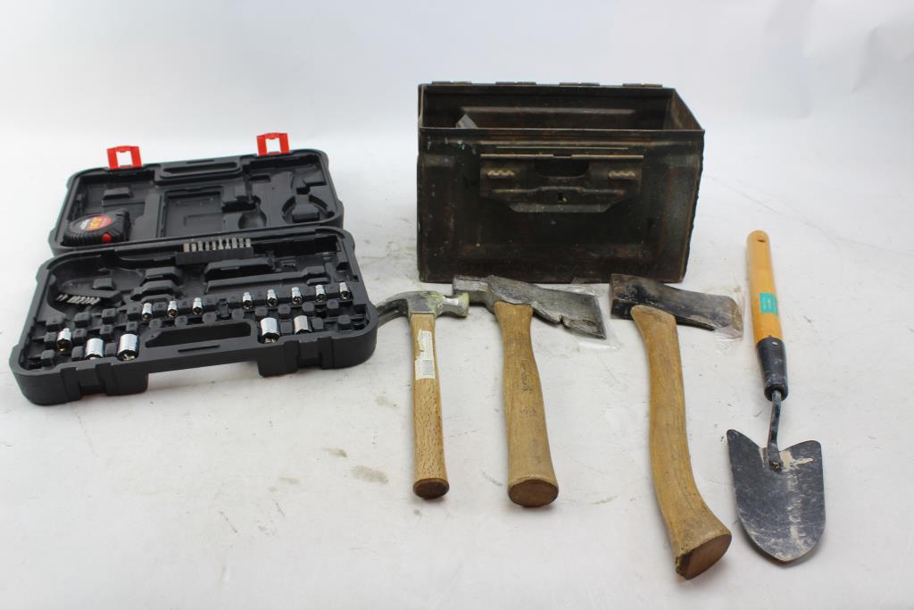Stanley Hatchet, Ultra Tough Tool Kit, Ammo Box With Misc Tools; 10+ Items