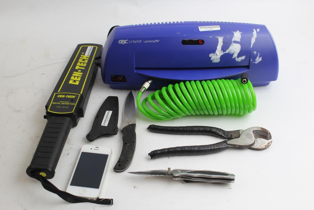 Get a great deal with this online auction for tools presented by Property Room on behalf of law enforcement or public agency client. - Stanley Screwdriver, GBC Laminator, Cen-Tech Metal Detector Wand, and More