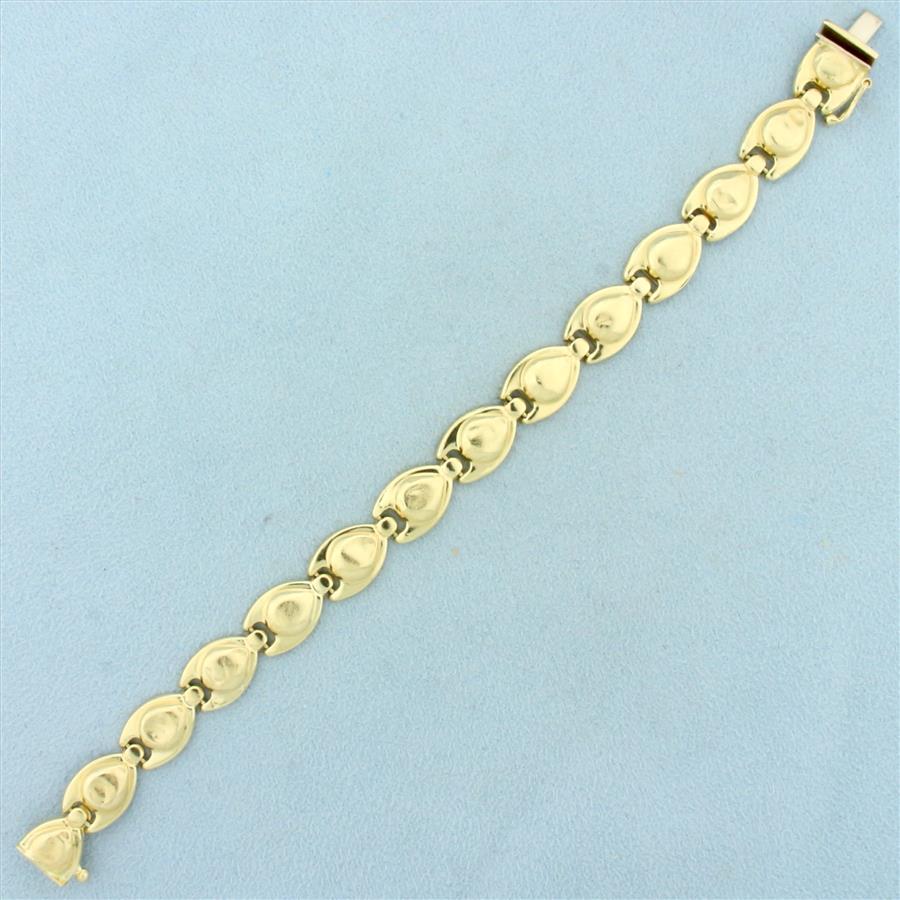 14k yellow gold. 2 1/4 inch inner diameter. 6.25mm wide. 10.2g.