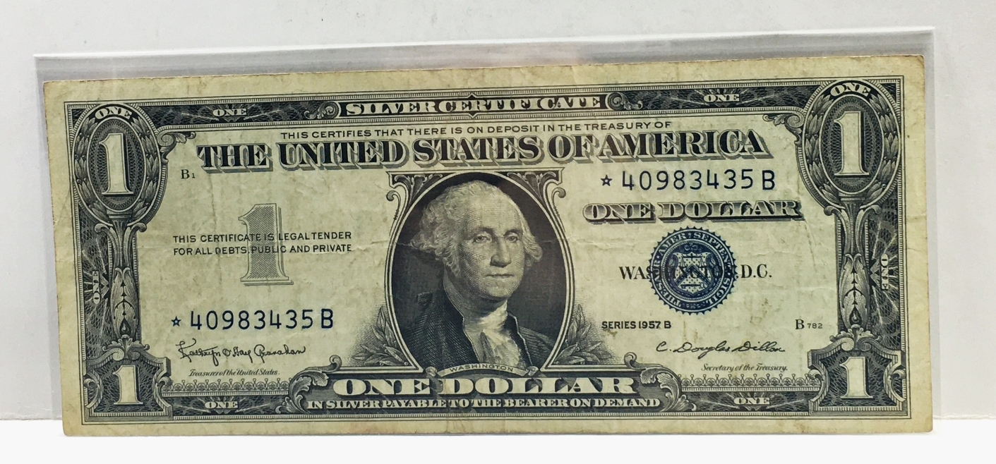 STAR NOTE REPLACEMENT ERROR Series 1957B $1 Silver Certificate Star Note*Crisp Paper