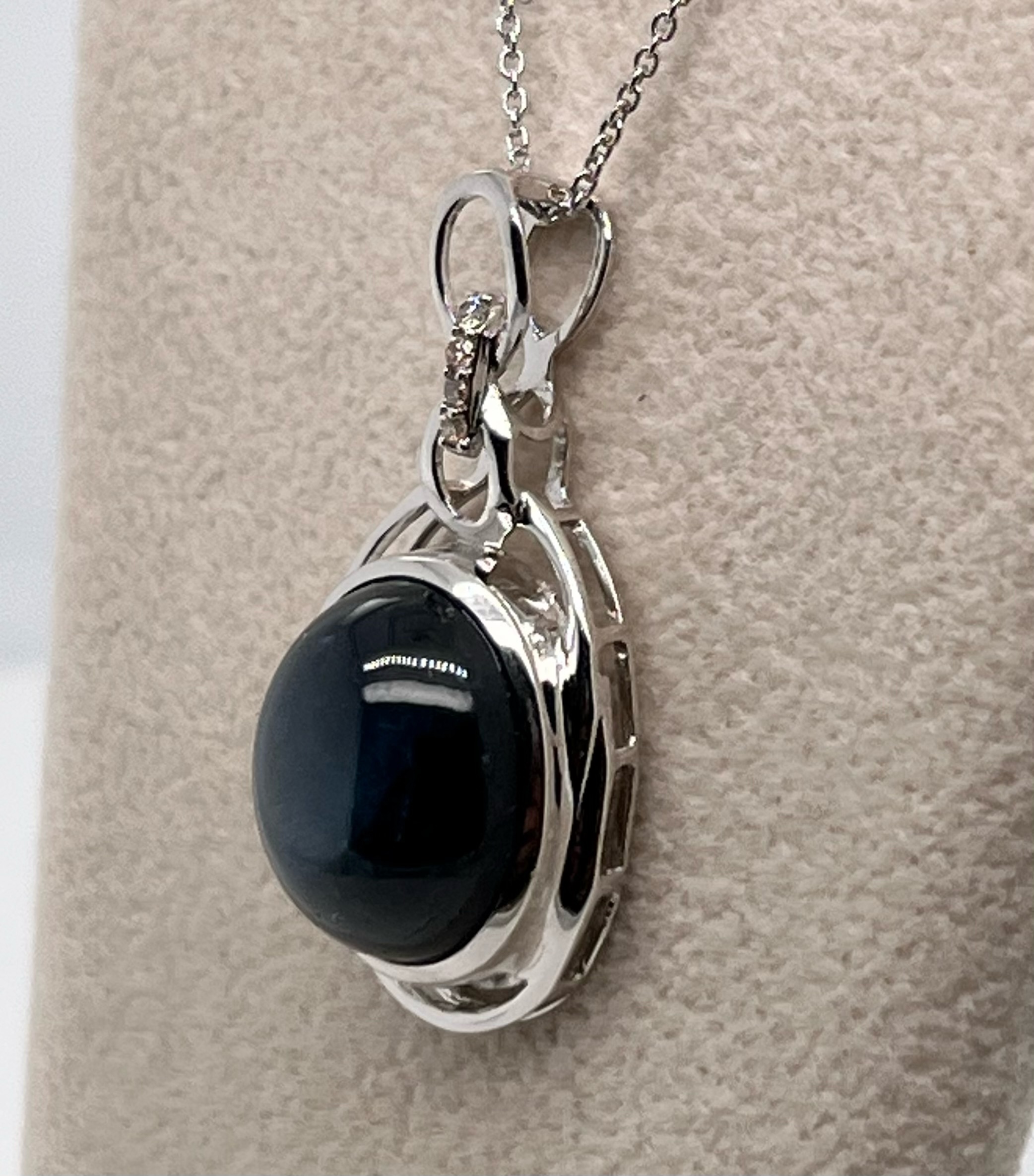 STAR SAPPHIRE & DIAMOND NECKLACE IN STERLING SILVER