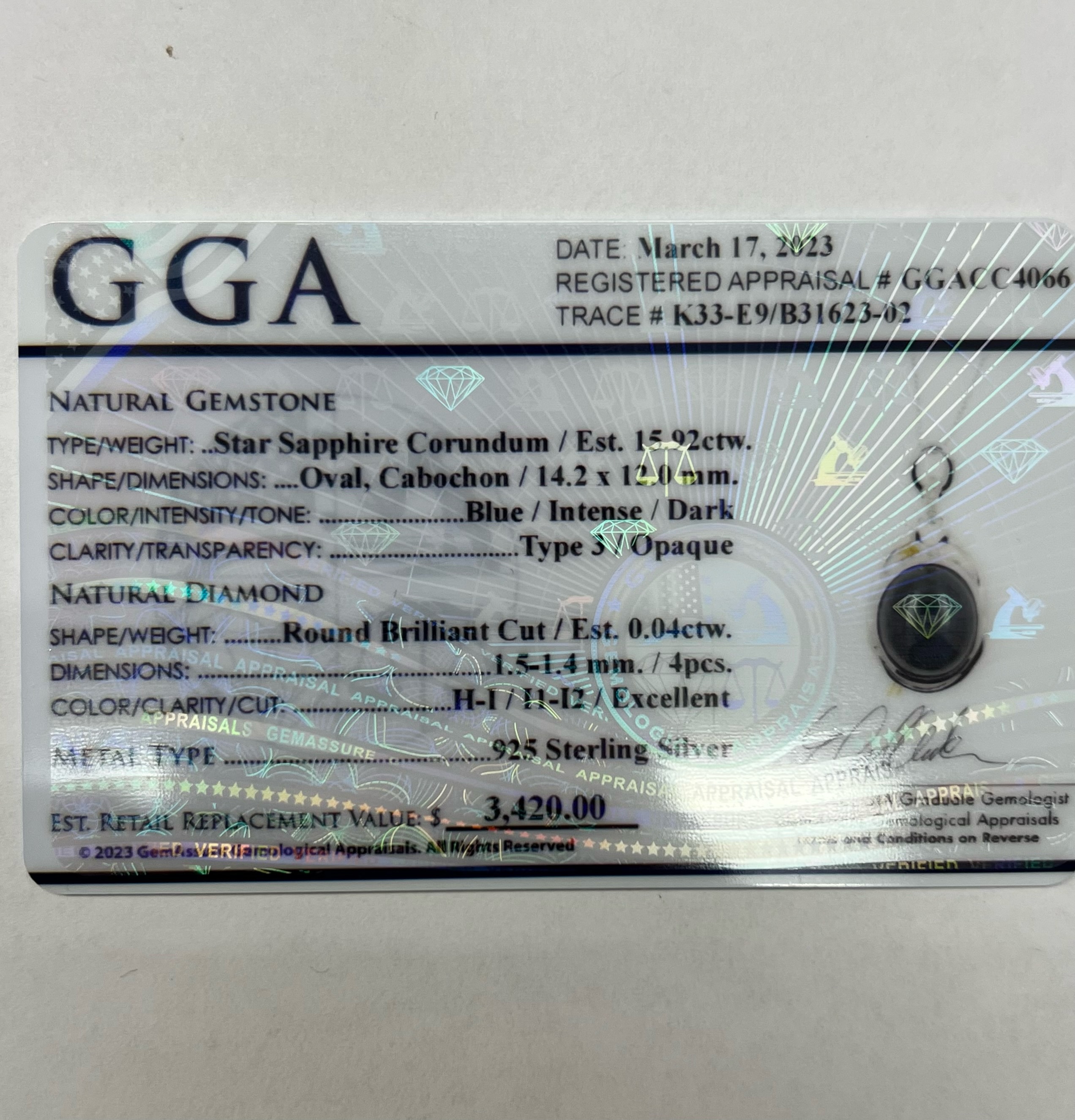 STUNNING STAR SAPPHIRE AND DIAMOND PENDANT AND CHAIN SET IN STERLING SILVER!