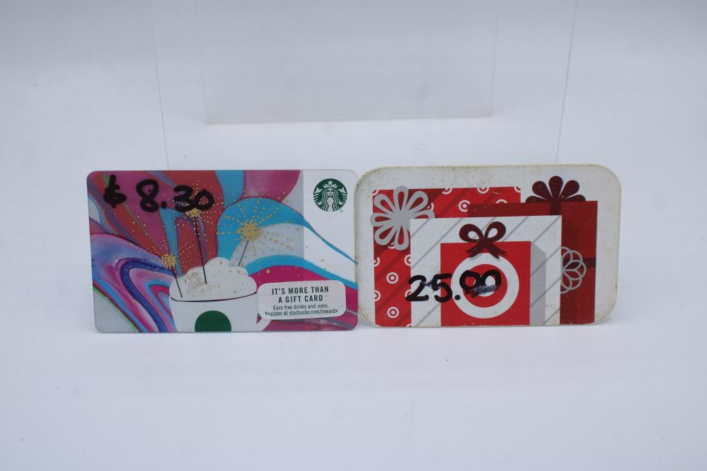 Get a great deal with this online auction presented by PropertyRoom.com on behalf of a law enforcement or public agency client. - Store: Starbucks ($20.05, 8.30, 2.50), Target ($25), Chevron ($4.17) Bed bath & beyond ($5.82)