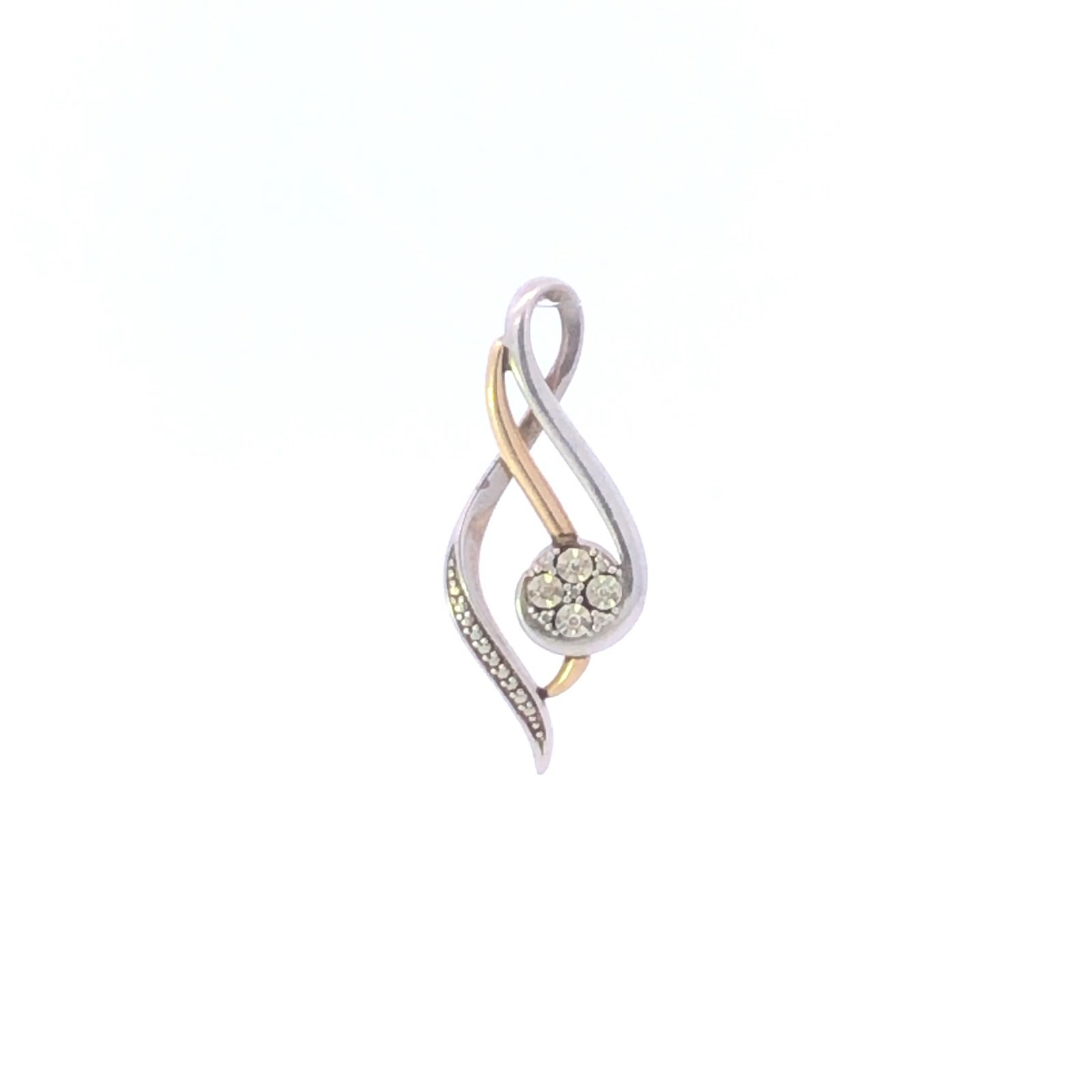 Item:  Sterling Silver 10k Gold Diamond Wavy Round Cluster Journey Pendant