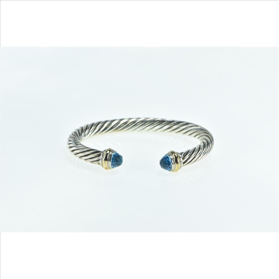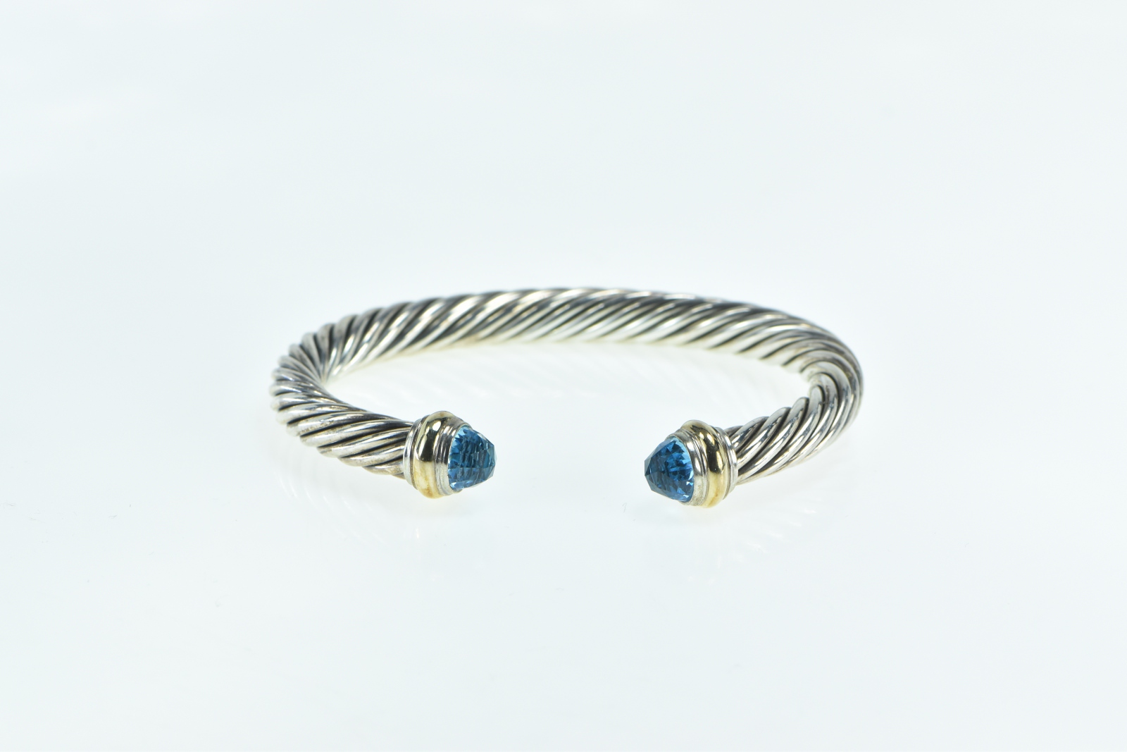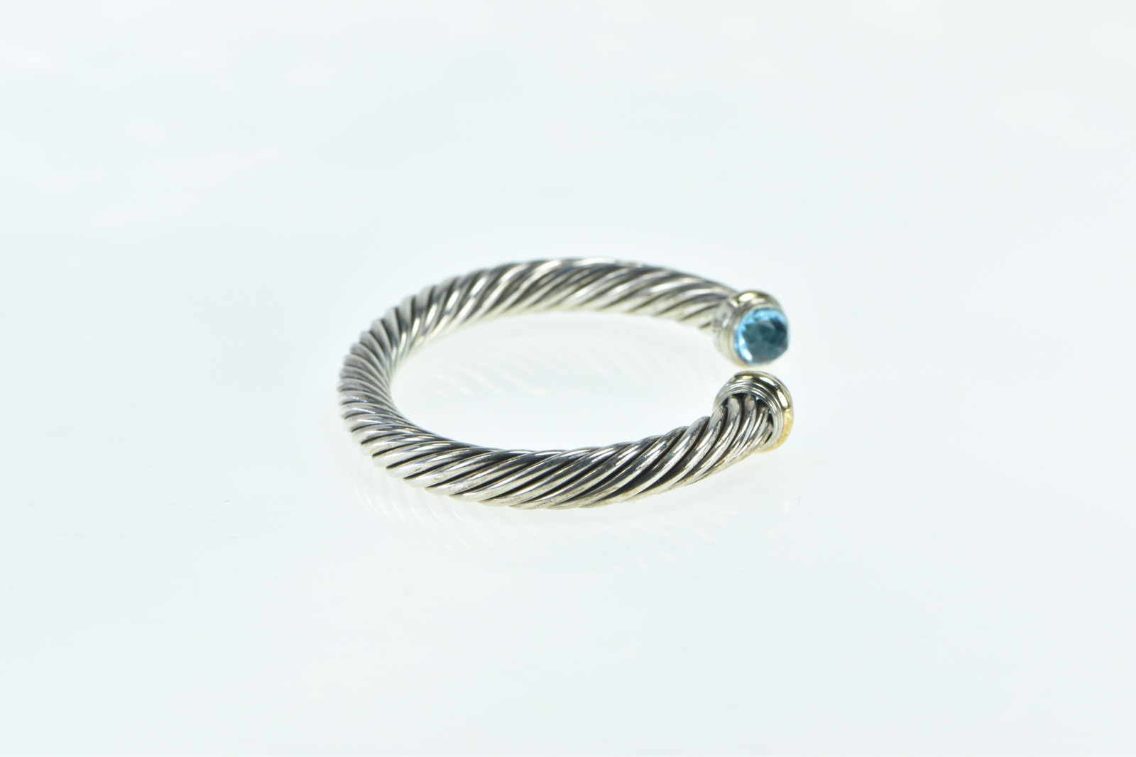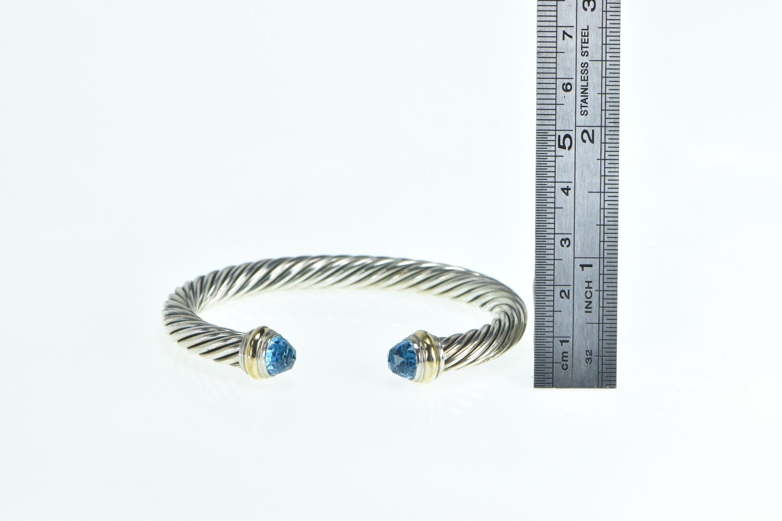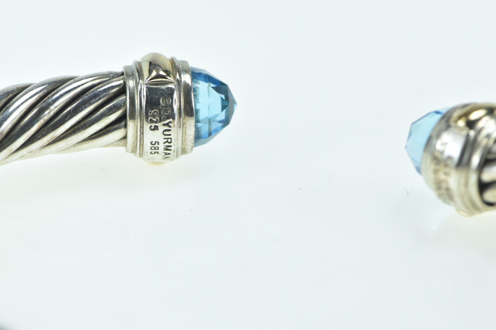 Item:  Sterling Silver 14K Gold David Yurman Blue Topaz Cuff Bracelet 6.25"