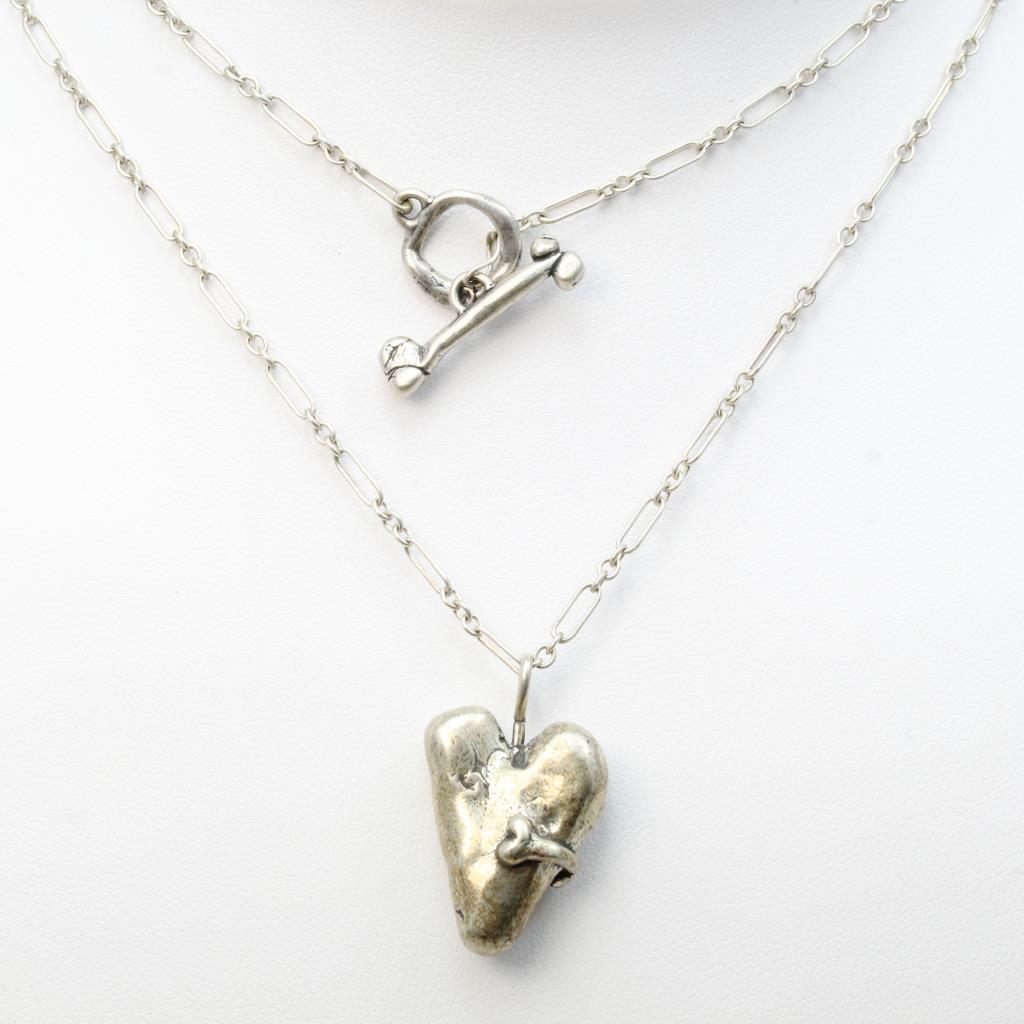 Sterling Silver 18.2g At-Choo Heart And Bone Necklace