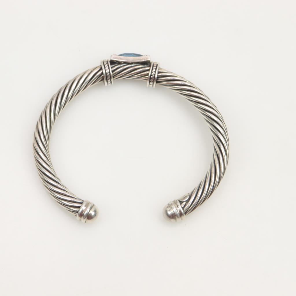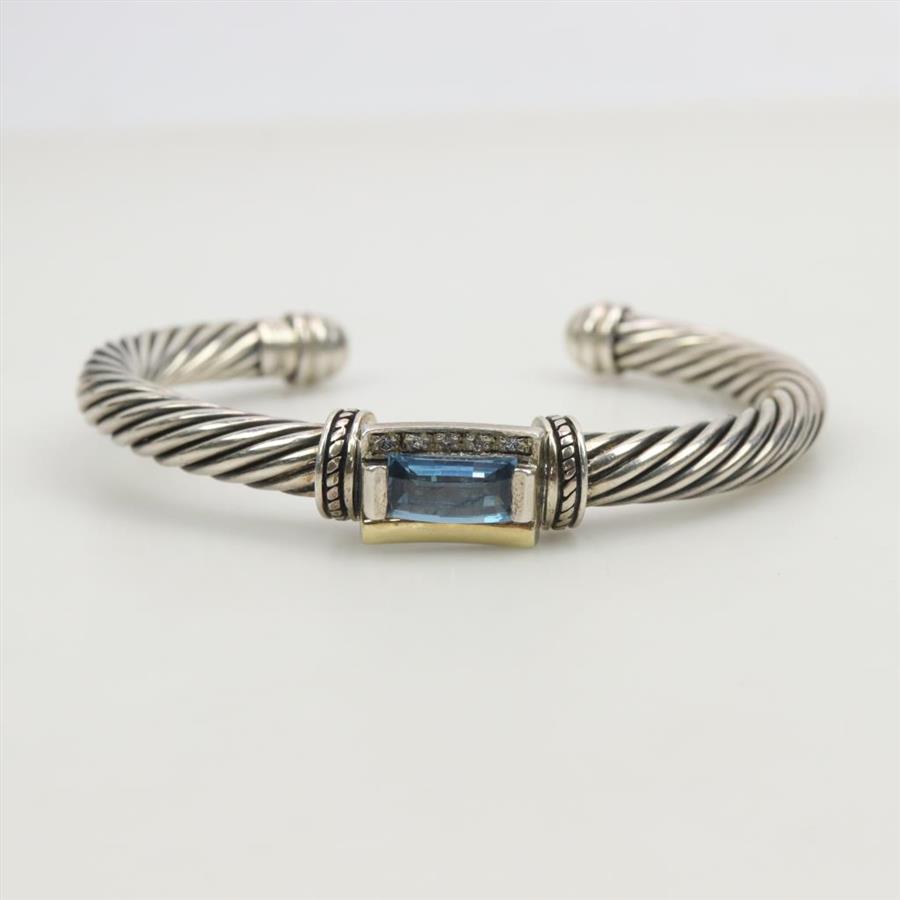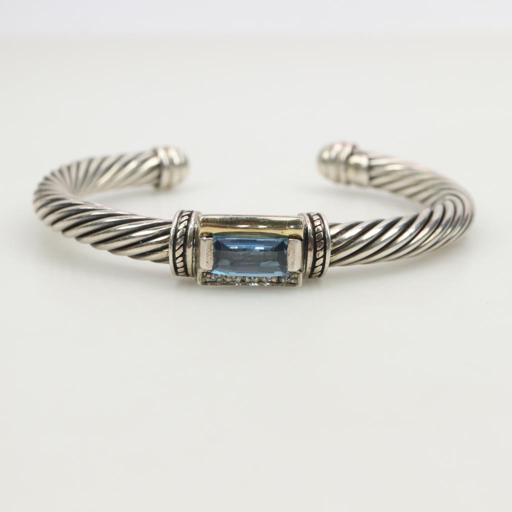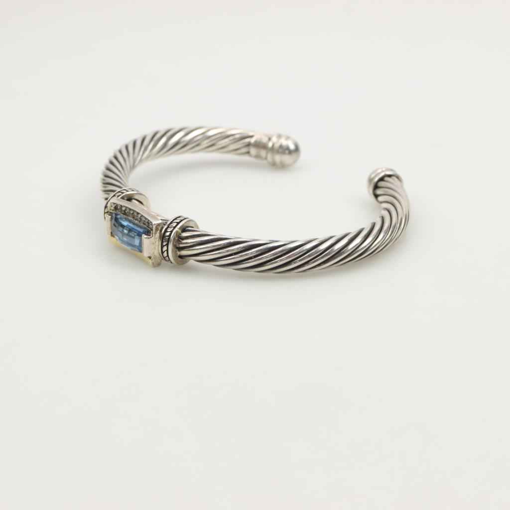 Sterling Silver 18kt Gold Accent Blue Topaz Cuff Bracelet