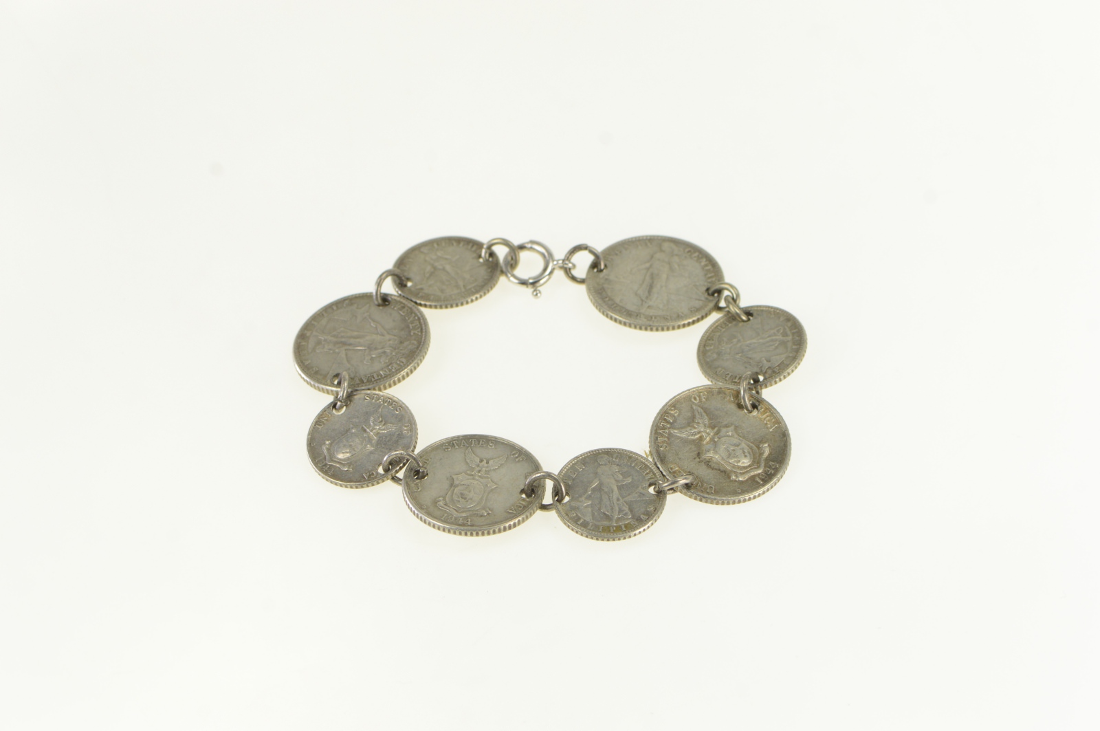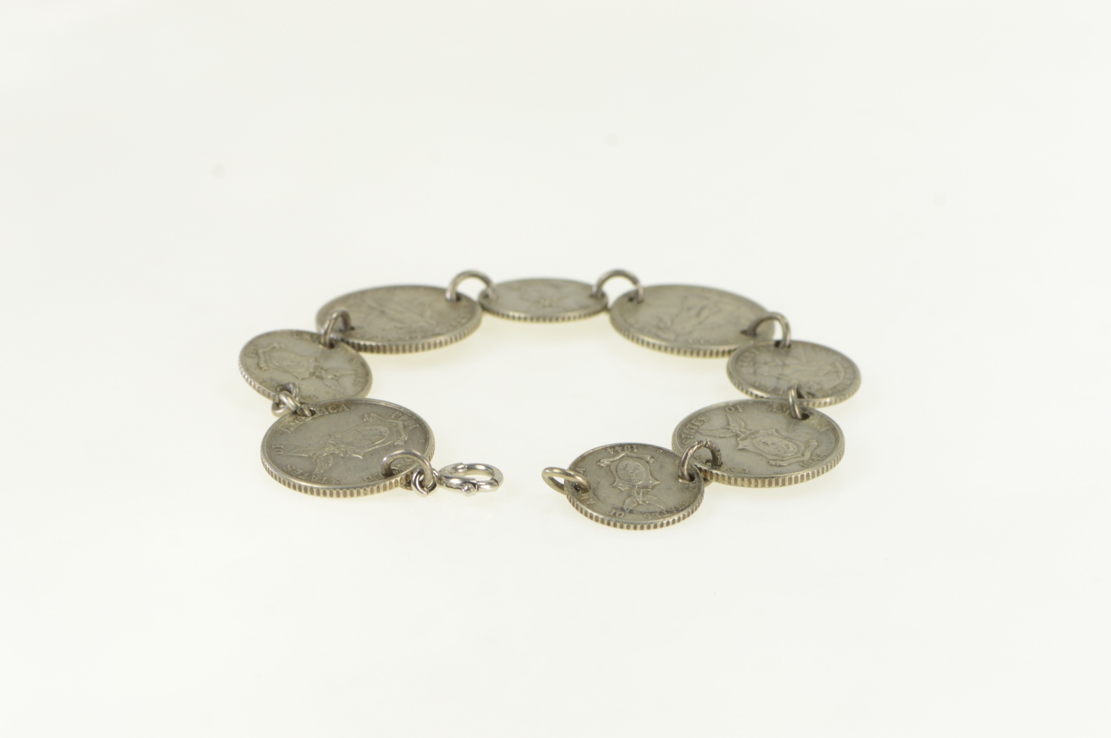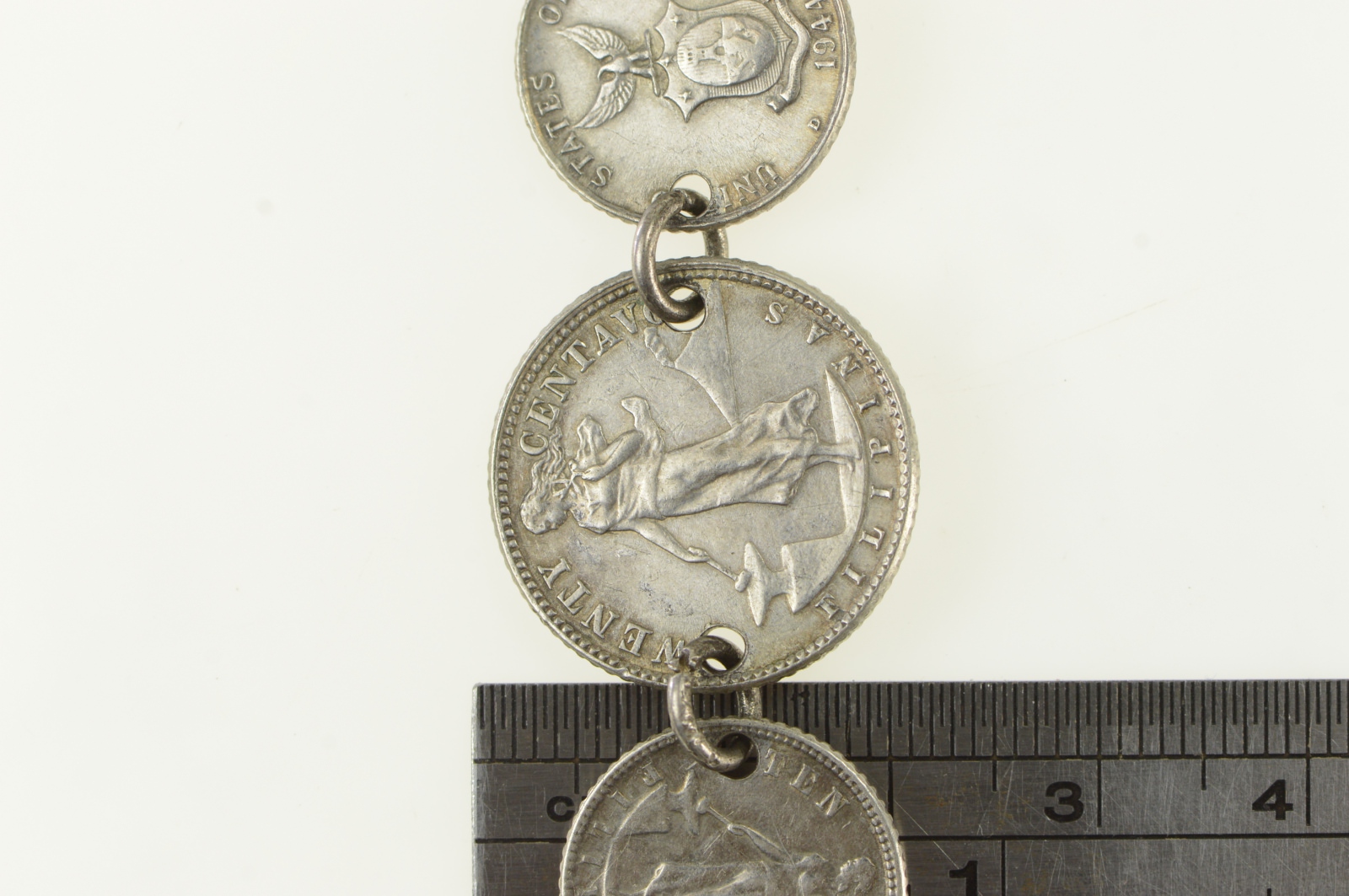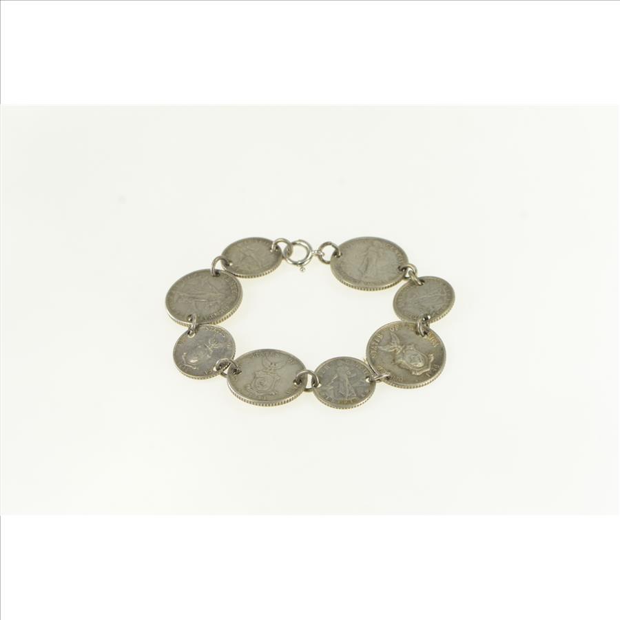 Item:  Sterling Silver 1944 D 10 20 Centavo Philippines Coin Bracelet 6.75"