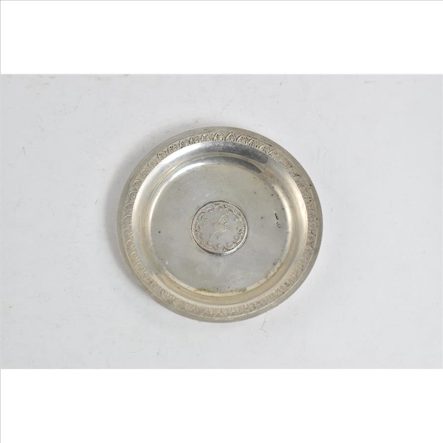 Item:  Sterling Silver 20 Kurush Turkish Coin Vintage Plate Dish