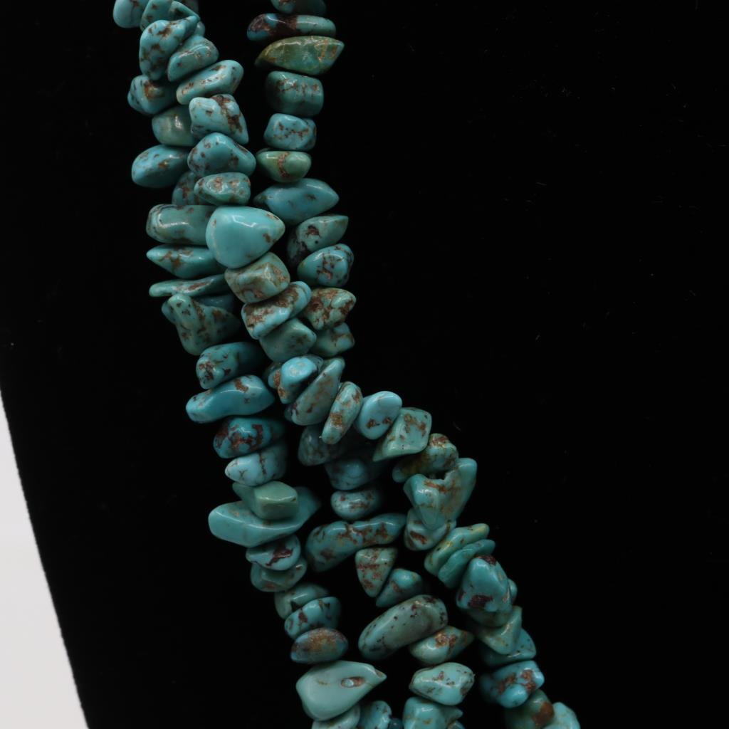 Sterling Silver 3 Strand Turquoise Bead Necklace