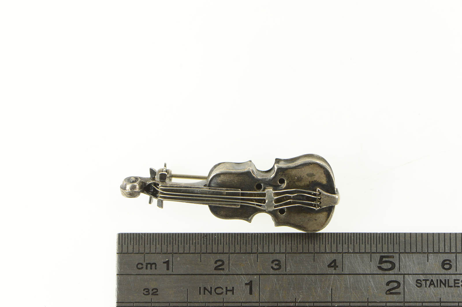 Item:  Sterling Silver 3D Ornate Violin Music Stringed Instrument Pin/Brooch