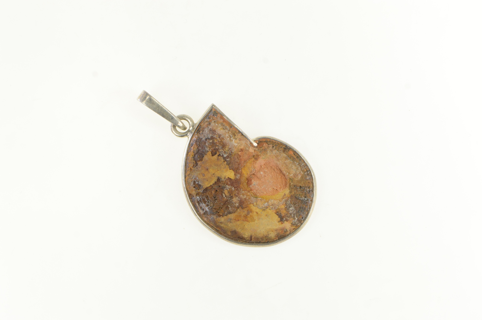 Item:  Sterling Silver Ammonite Fossil Shell Crystal Medallion Pendant