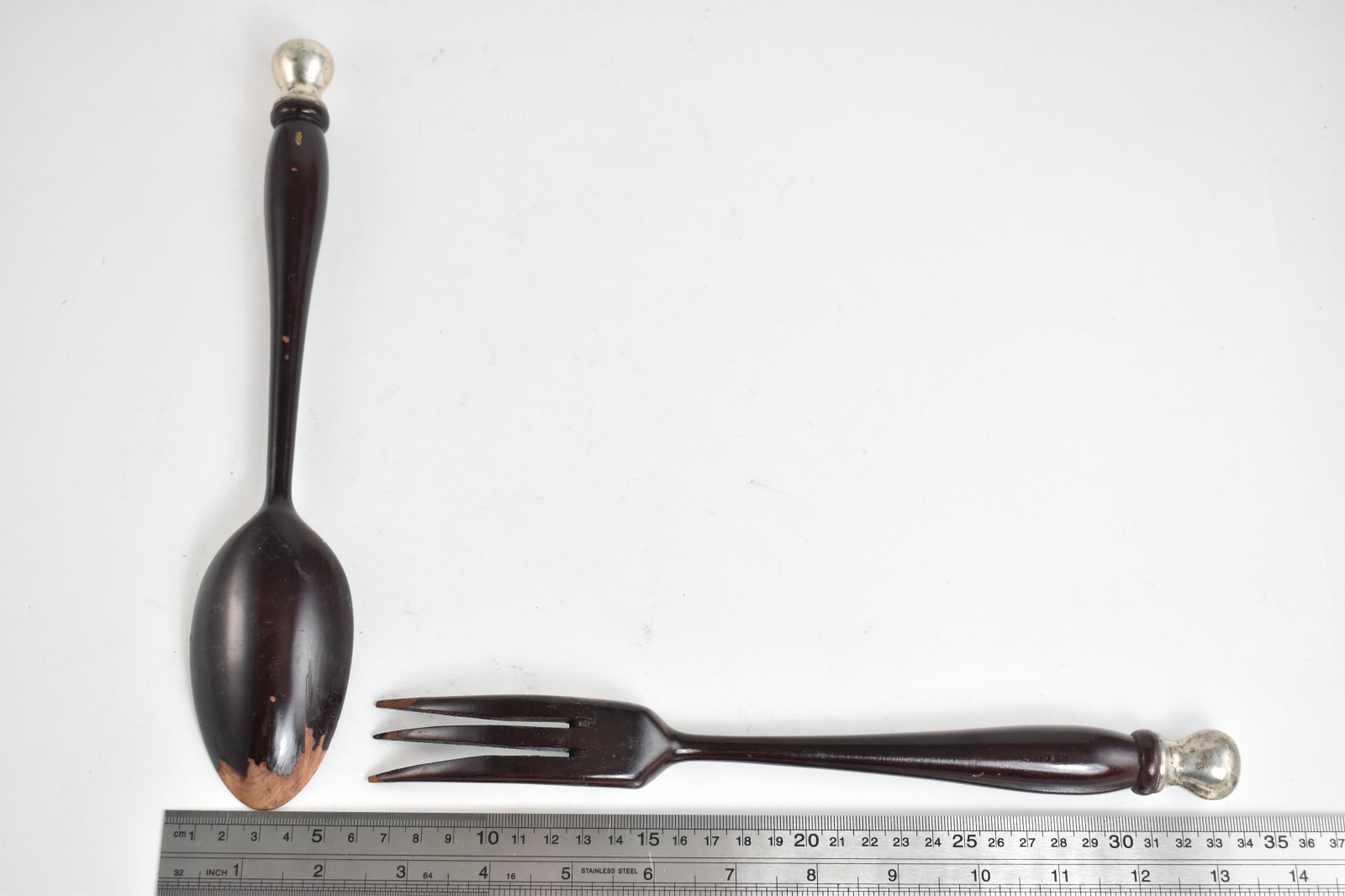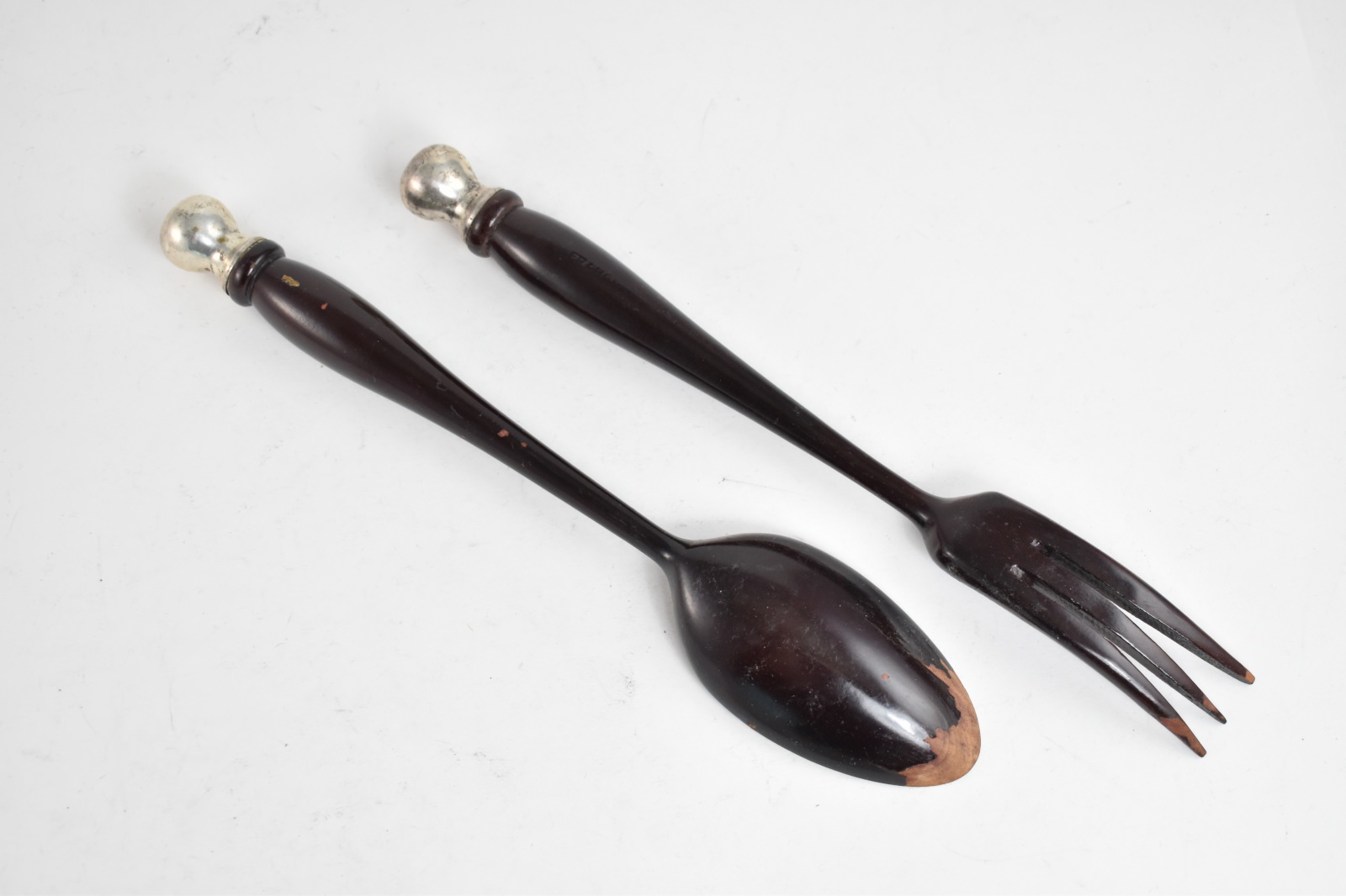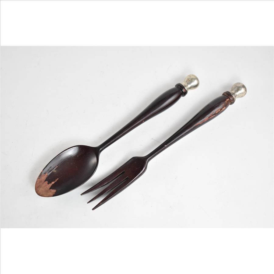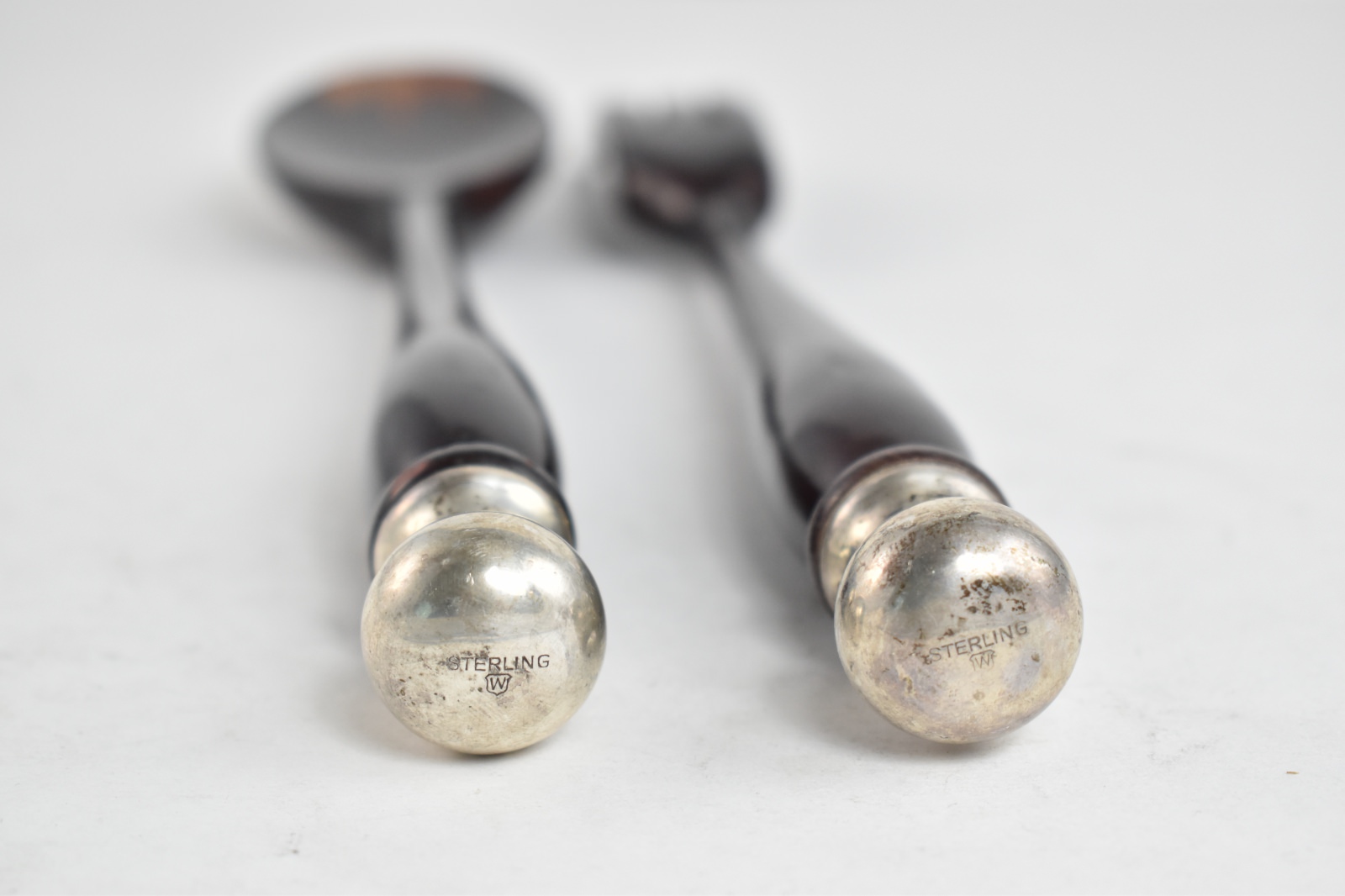 Sterling Silver Antique Wooden Salad Serving Fork Spoon Set
