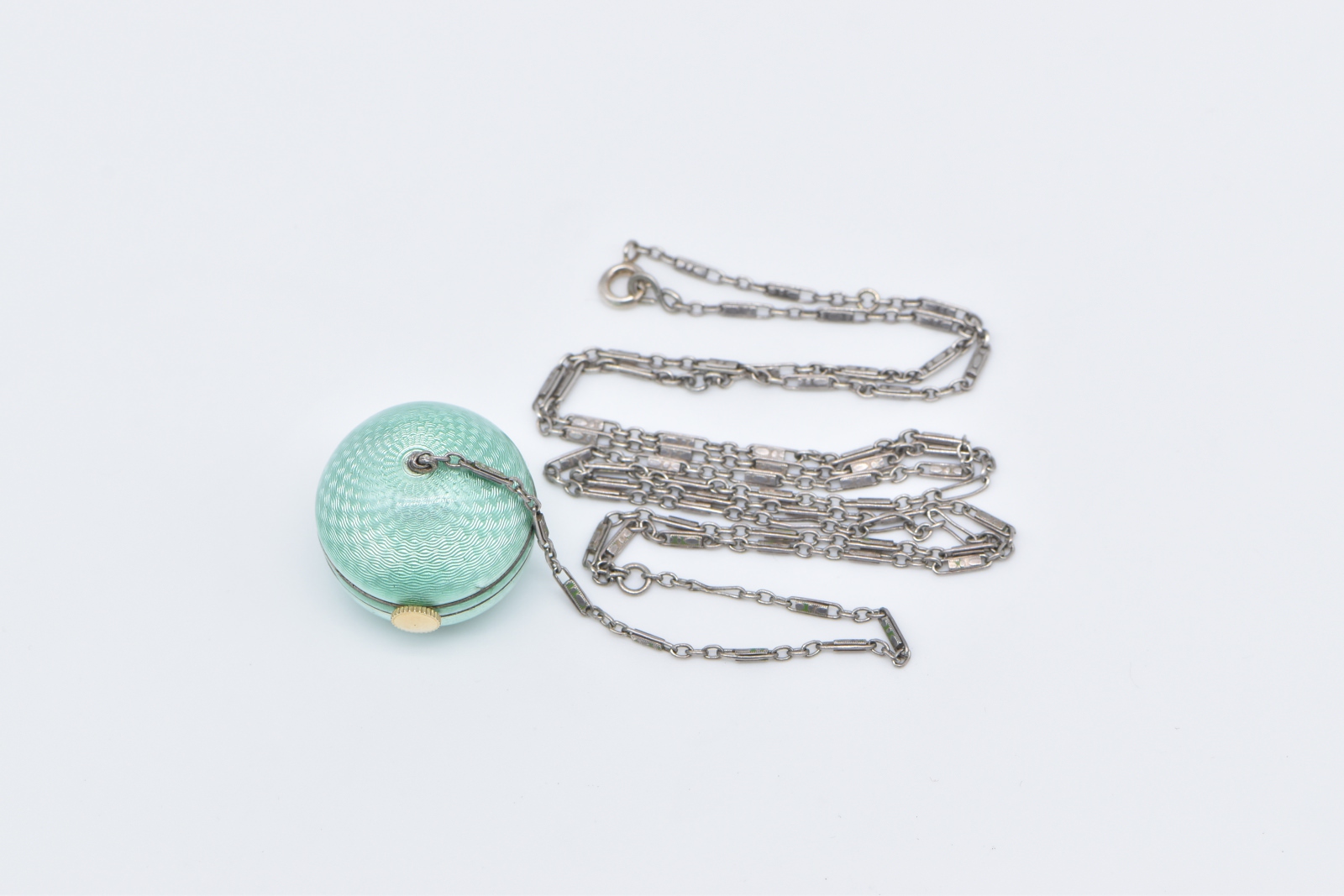 Item:  Sterling Silver Argent Dore Enamel Ball Watch Chain Necklace 24.75"
