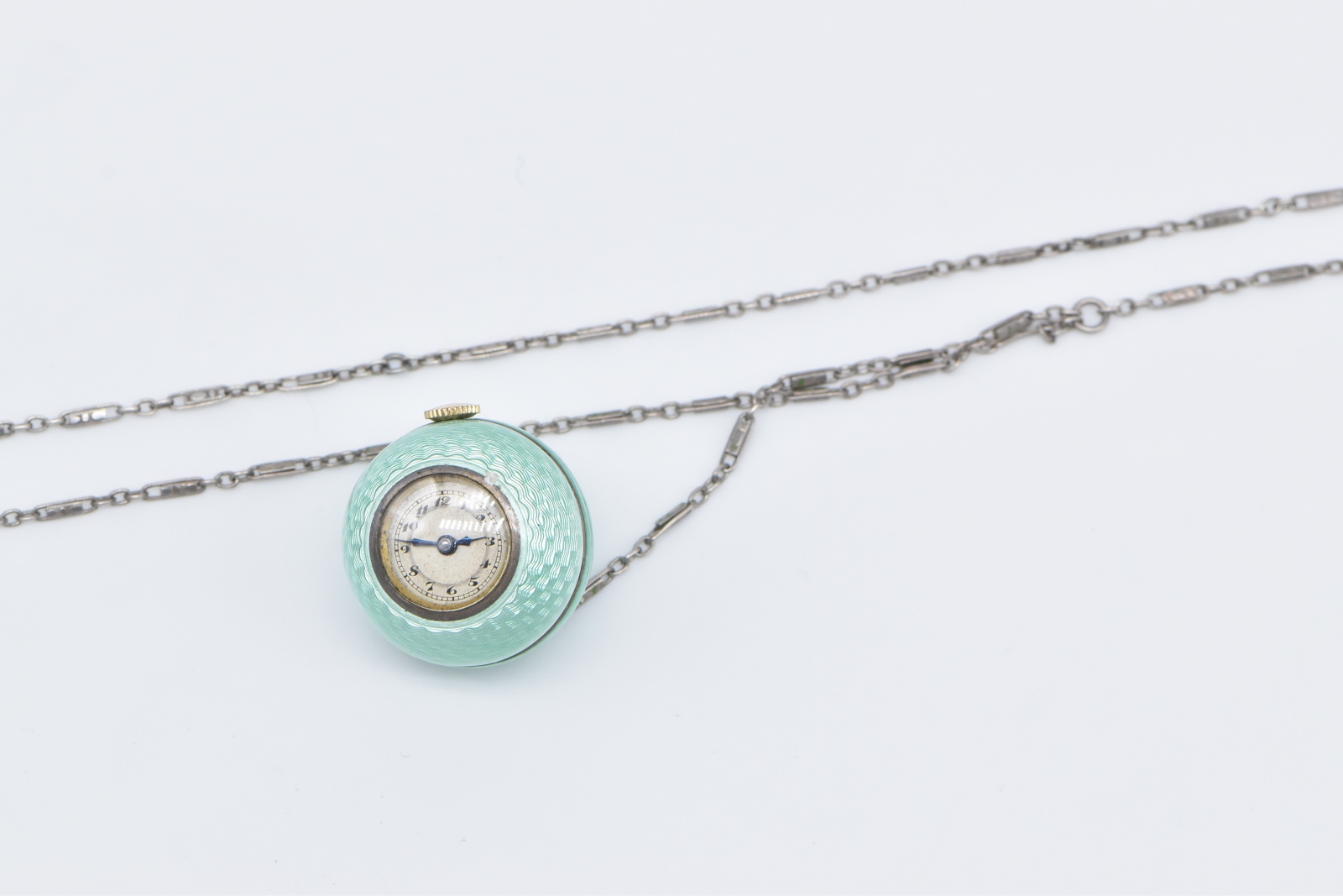 Sterling Silver Argent Dore Enamel Ball Watch Chain Necklace 24.75"