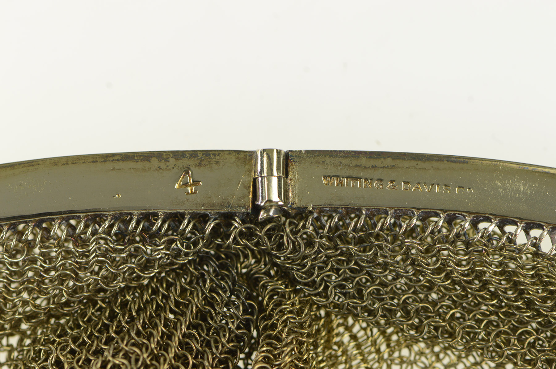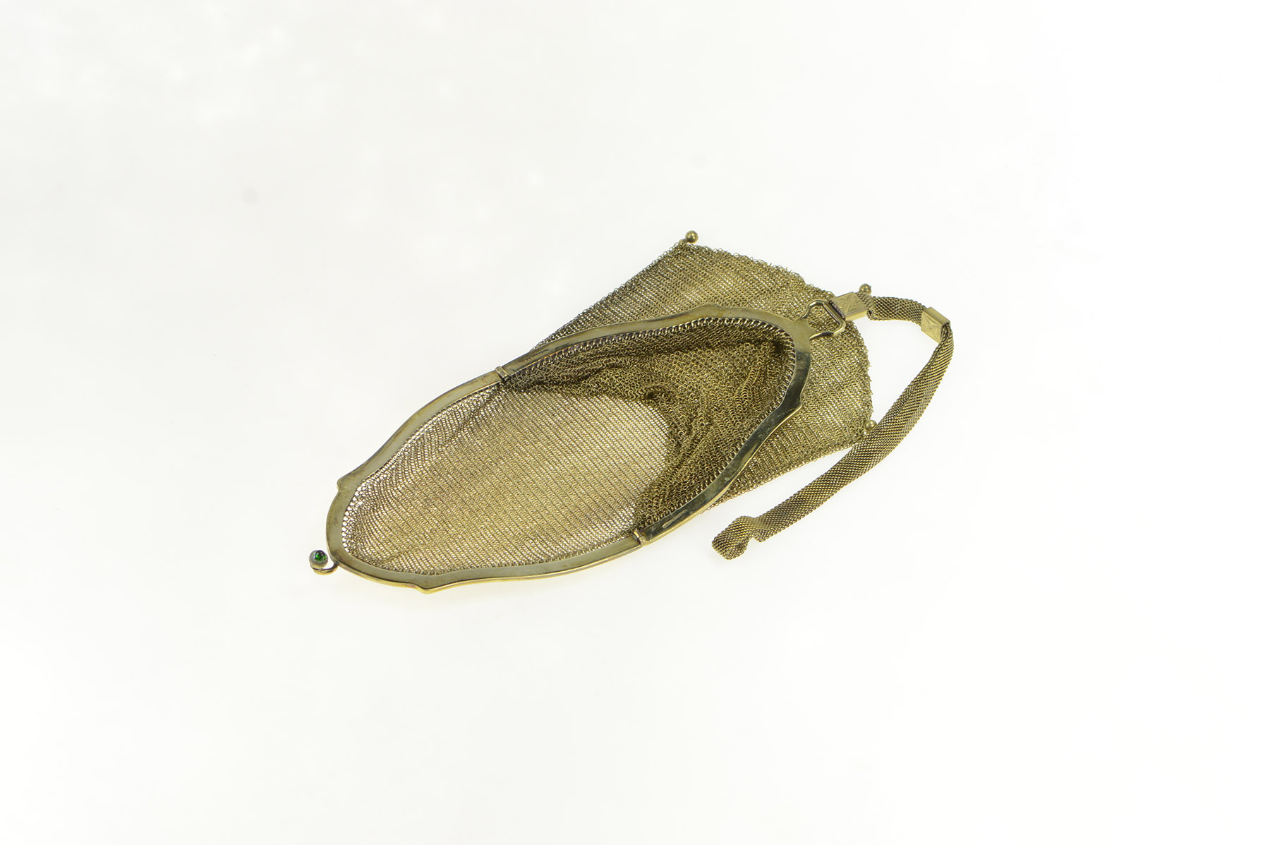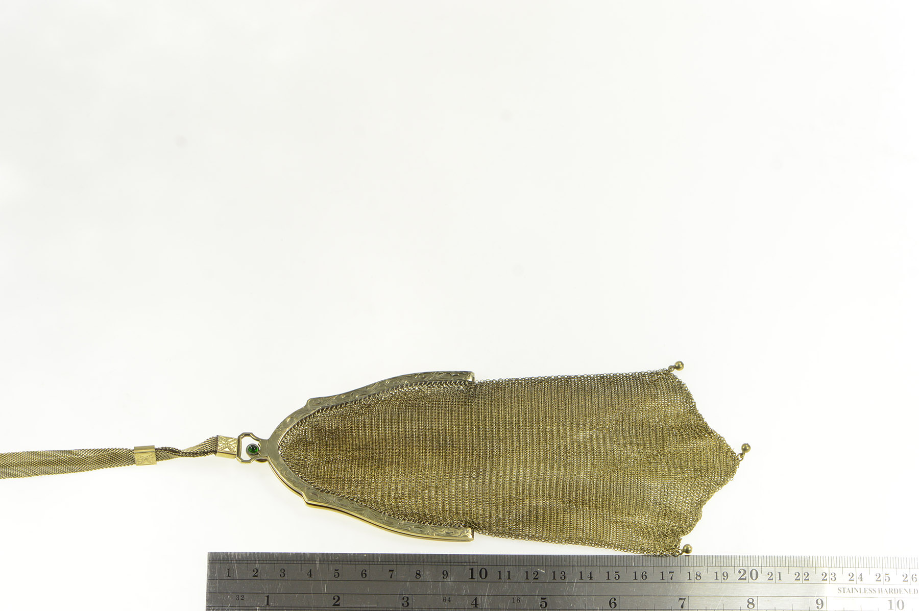 Item:  Sterling Silver Art Deco Engraved Scroll Mesh Vermeil Purse