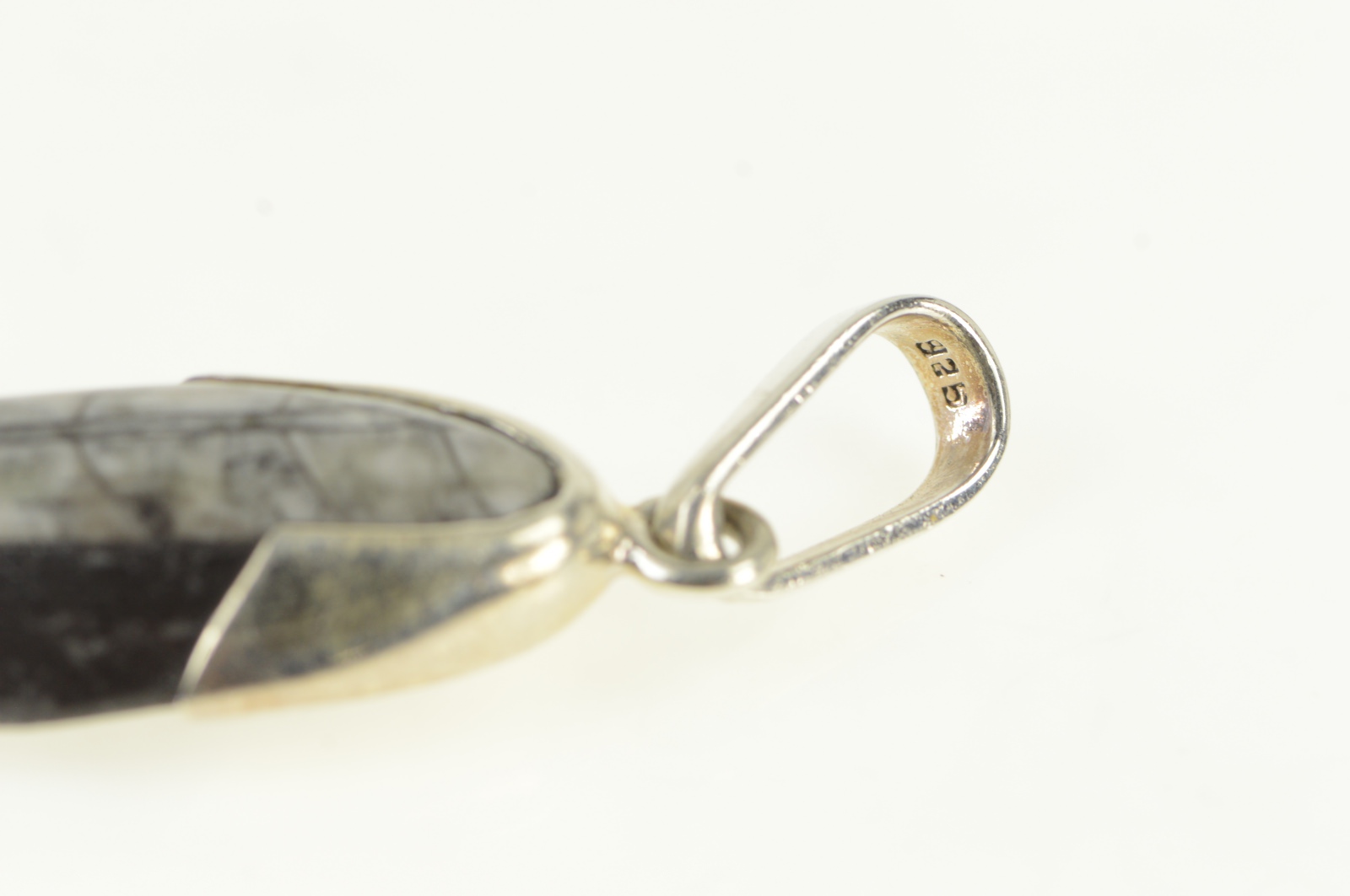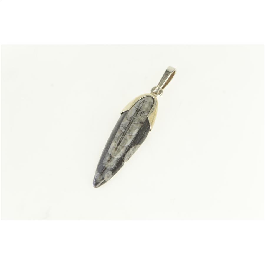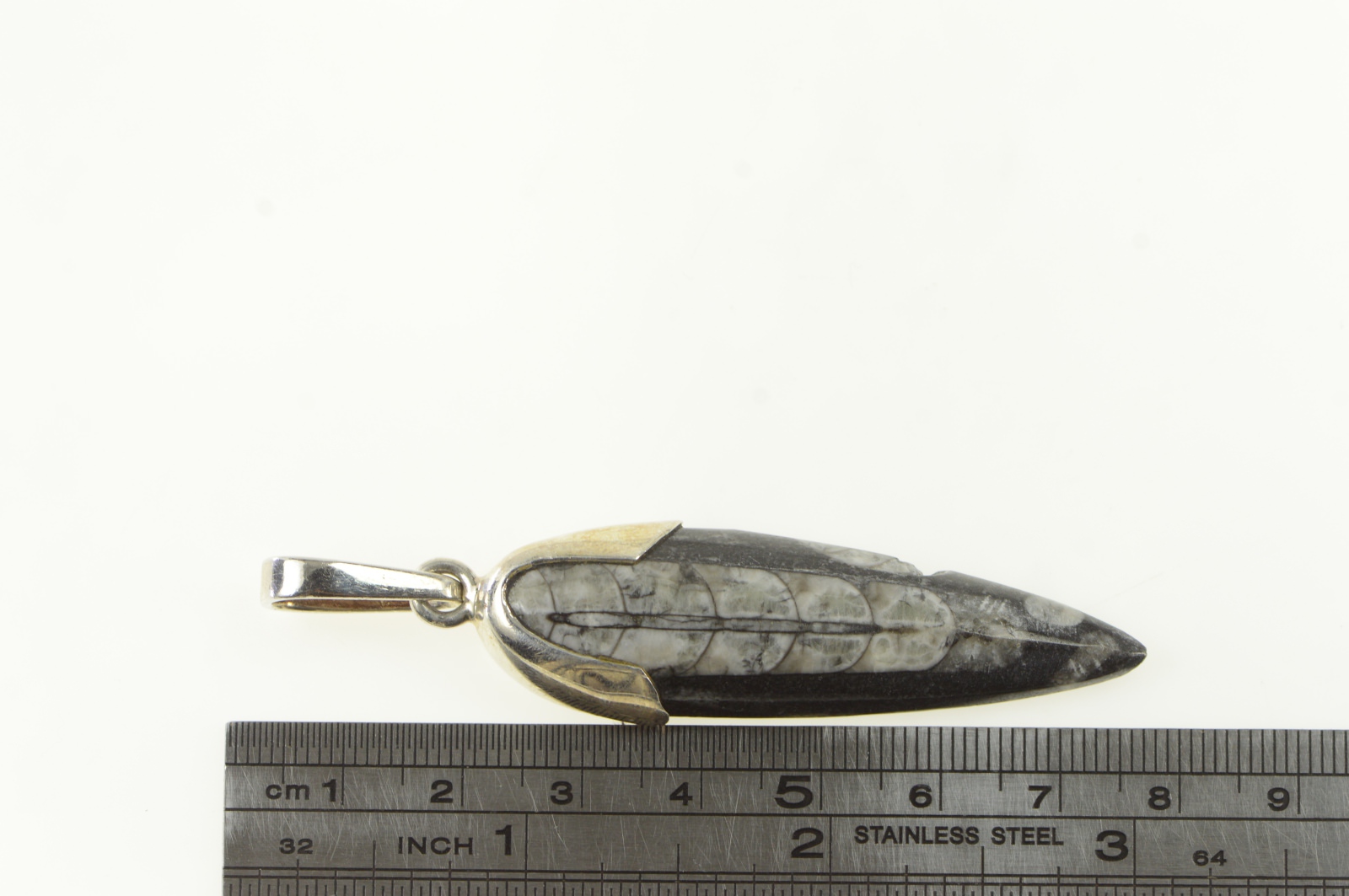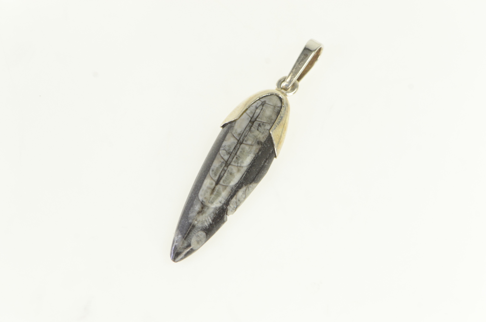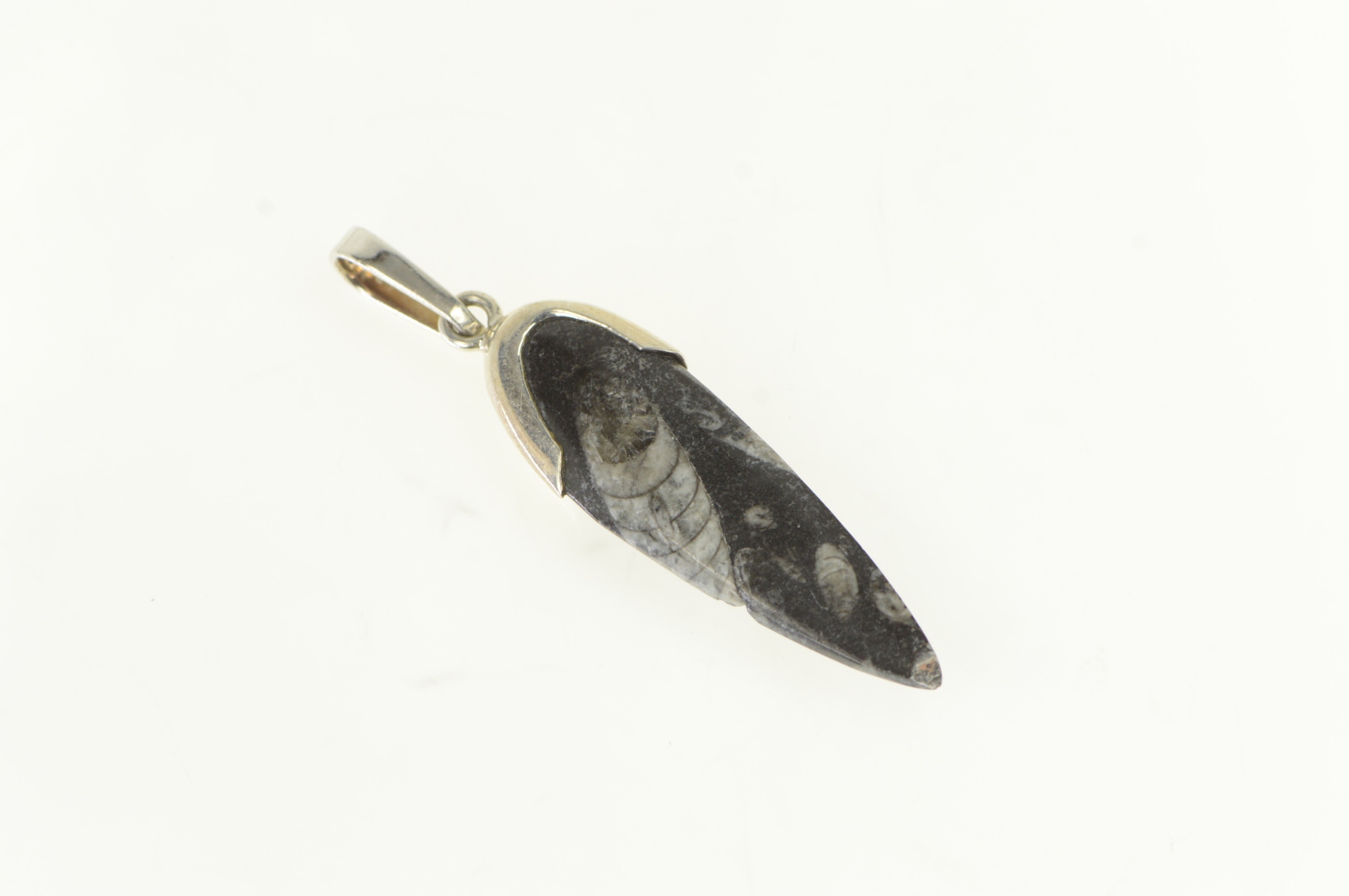 Item:  Sterling Silver Authentic Orthoceras Cephalopod Fossil Pendant