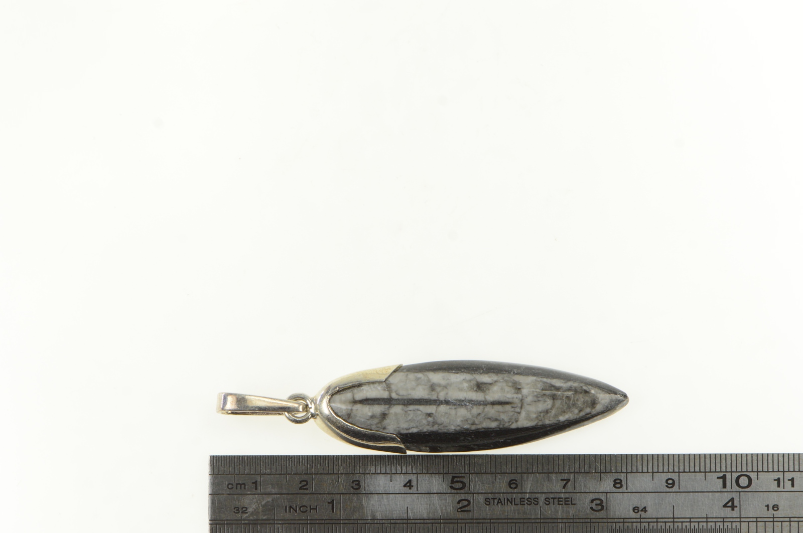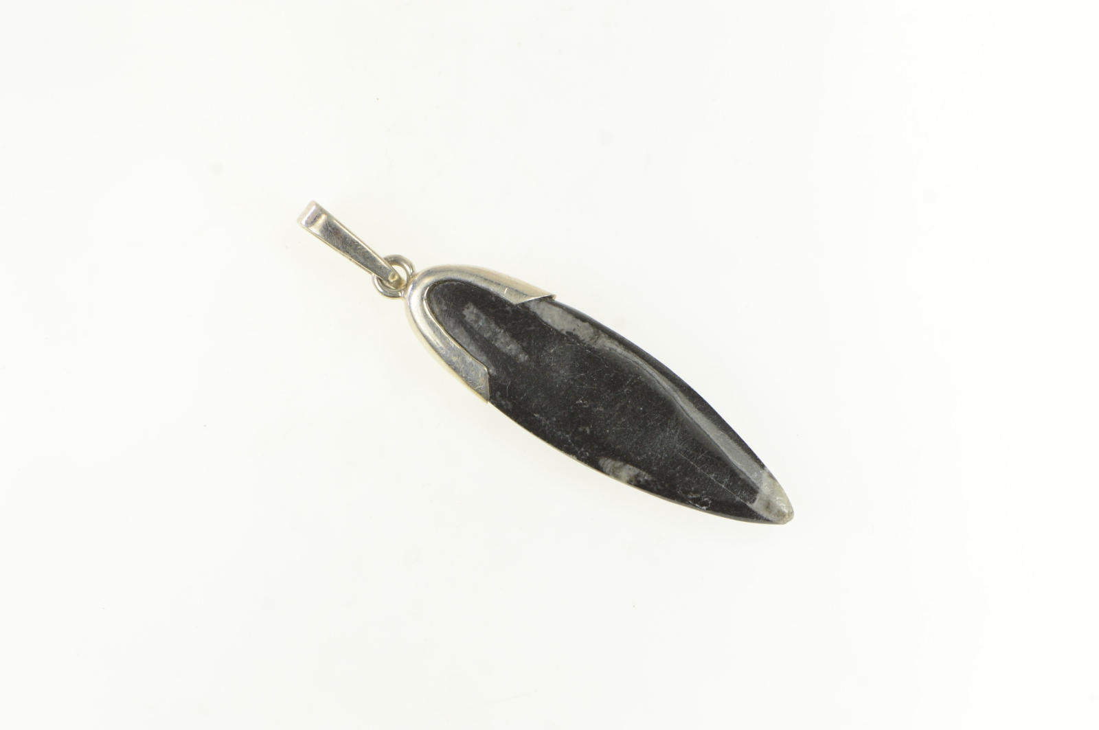 Item:  Sterling Silver Authentic Orthoceras Cephalopod Fossil Pendant