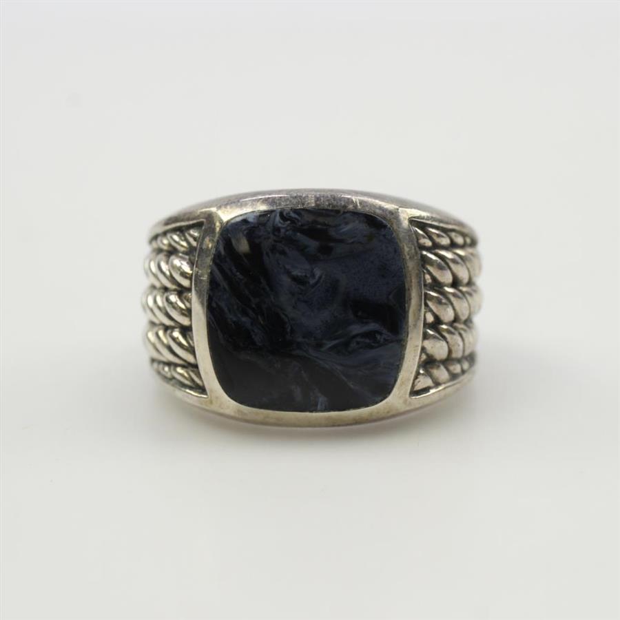 Sterling Silver Blue Stone Signet Ring