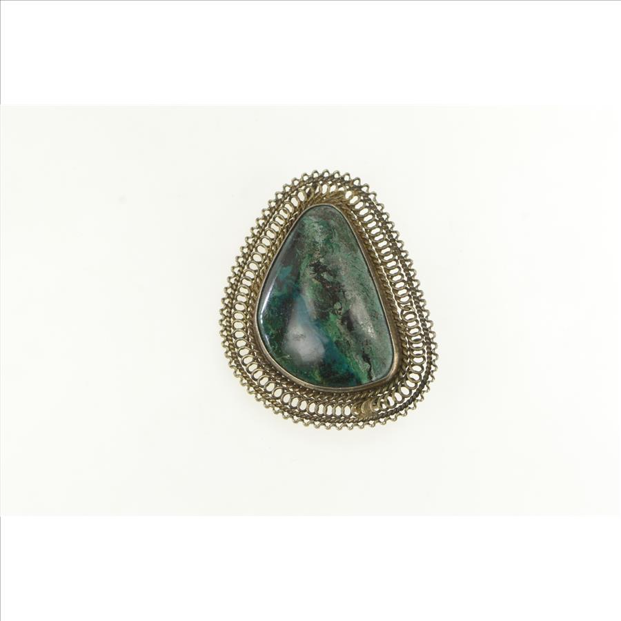 Sterling Silver Chrysocolla Vintage Southwestern Oval Pin/Brooch