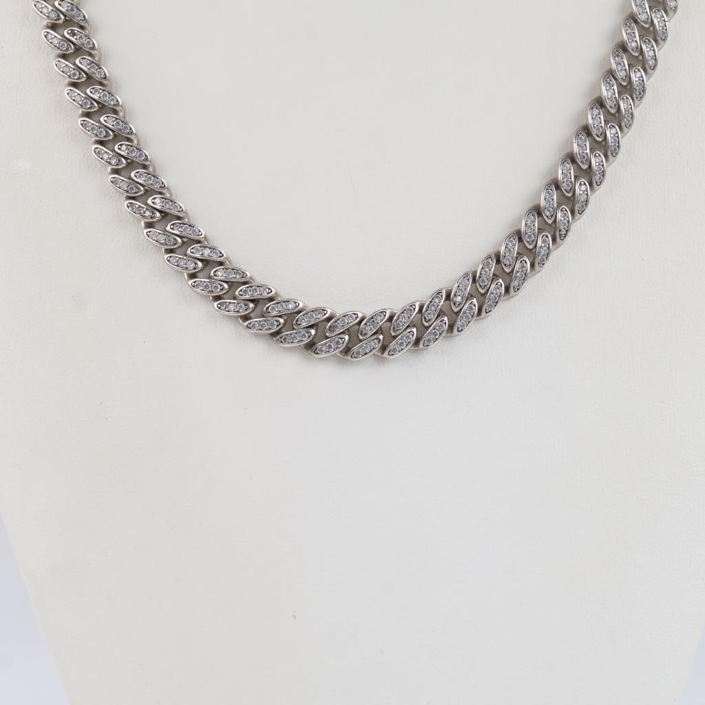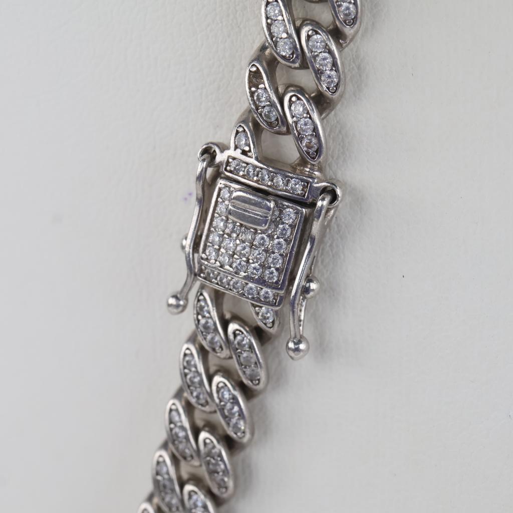 Sterling Silver Clear Stone Cuban Chain Necklace